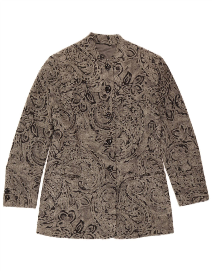 BOGNER Damen-Blazerjacke mit 5 Knöpfen, US 10, große graue Paisley-Wolle