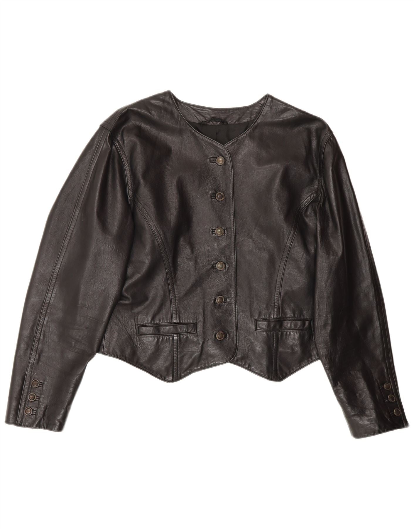BOGNER Damen Crop Lederjacke UK 14 Medium Schwarz