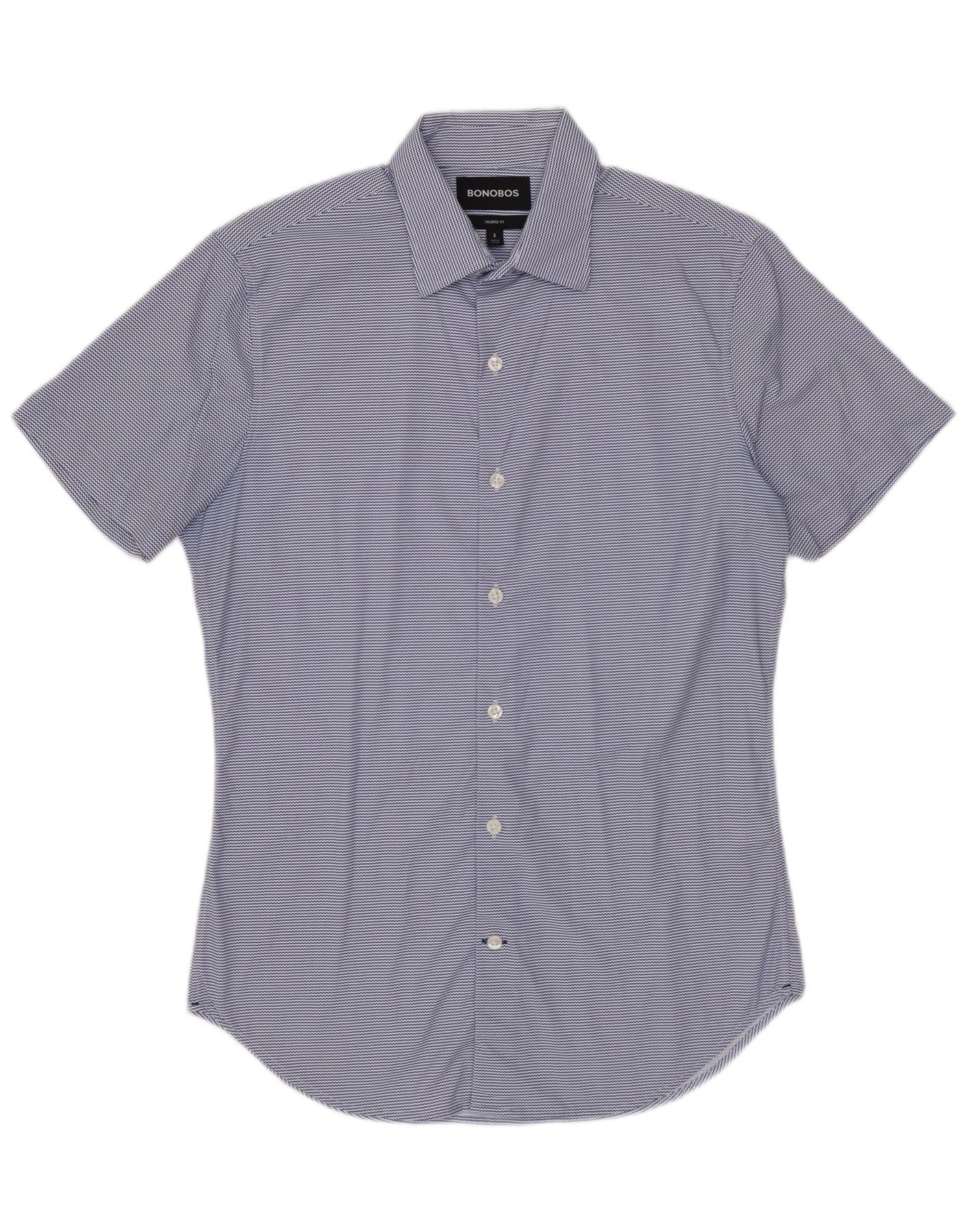 BONOBOS Herren-Kurzarmhemd mit maßgeschneiderter Passform, kleines blaues Nadelstreifen-Nylon