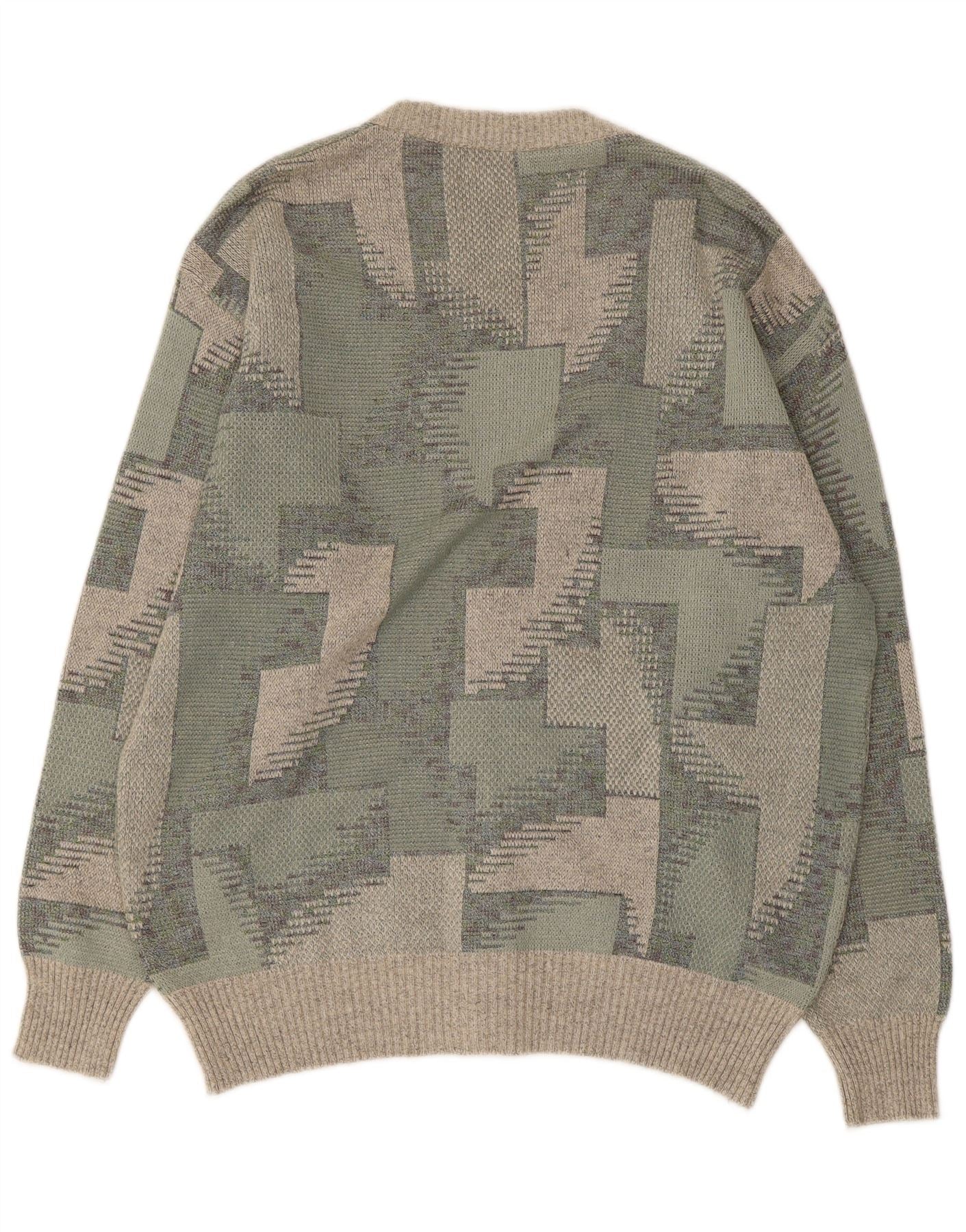 BREIDHOF Herren-Strickjacke, EU 54, XL, grüne geometrische Baumwolle