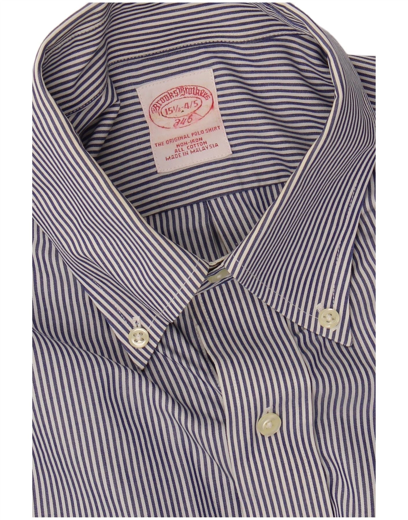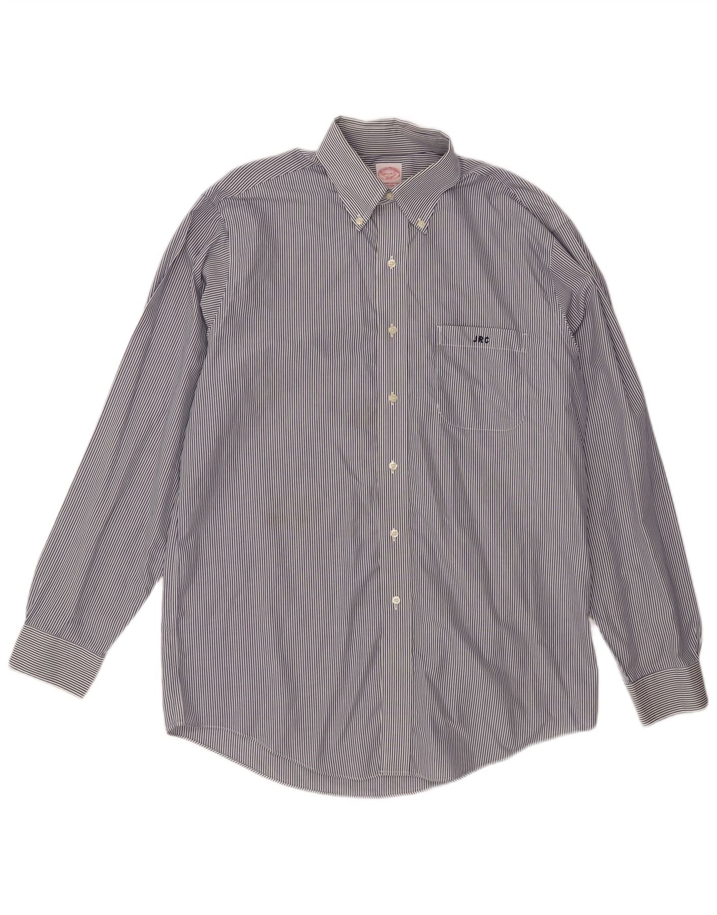 BROOKS BROTHERS Mens NON - IRON Shirt Size 15 1/2 Medium Navy Blue Striped