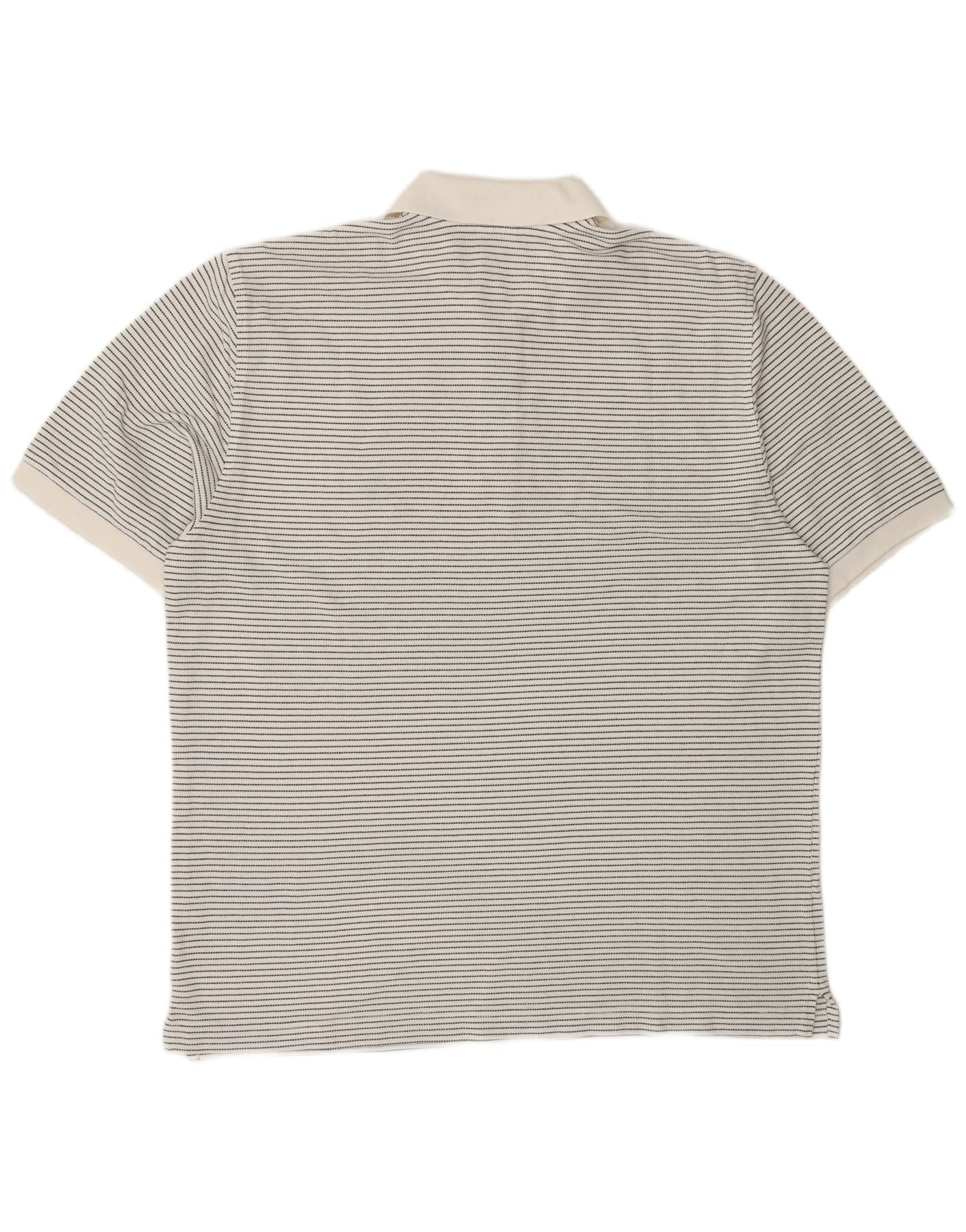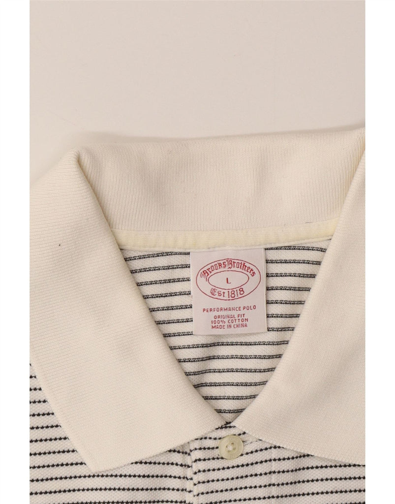 BROOKS BROTHERS Mens Original Fit Polo Shirt Large White Pinstripe Cotton
