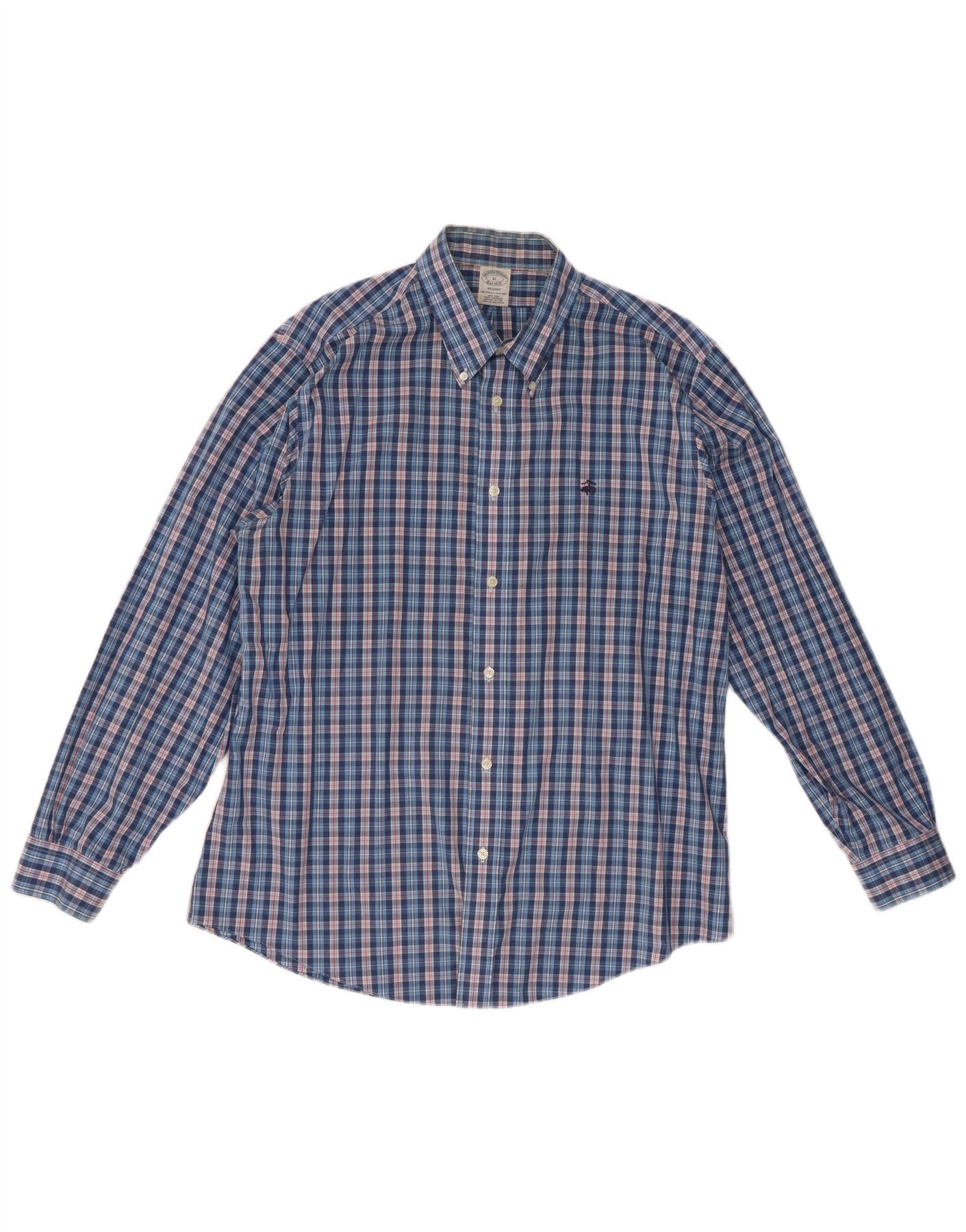 Brooks Brothers Herrenhemd XL, blau kariert, Baumwolle