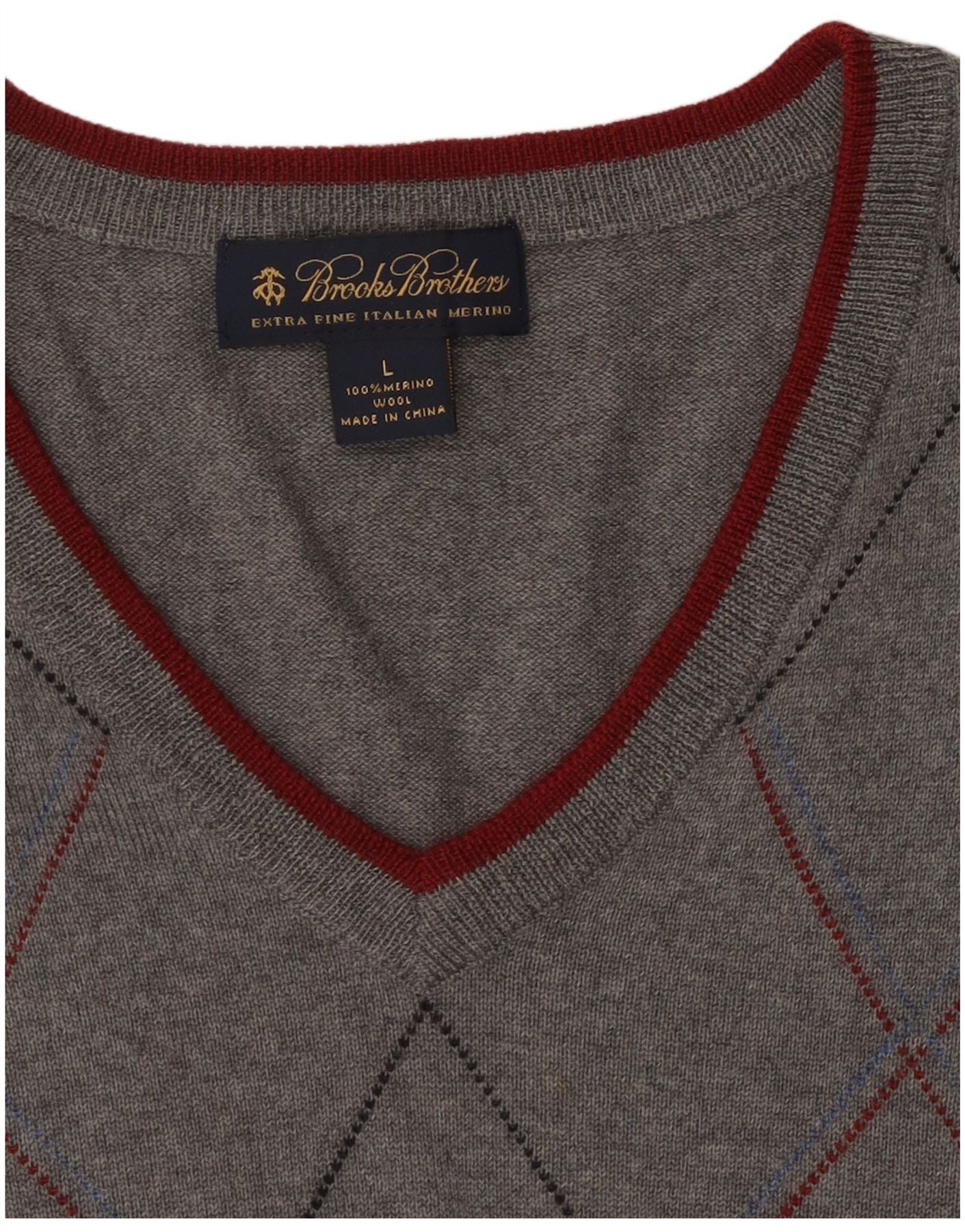 BROOKS BROTHERS Herren-Pullover mit V-Ausschnitt, Größe L, Grau Argyle/Diamant