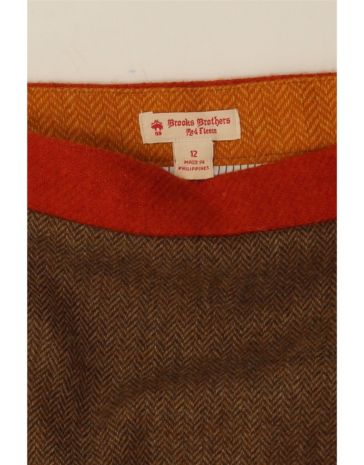 BROOKS BROTHERS Womens A-Line Skirt US 12 Large W34 Brown Colourblock