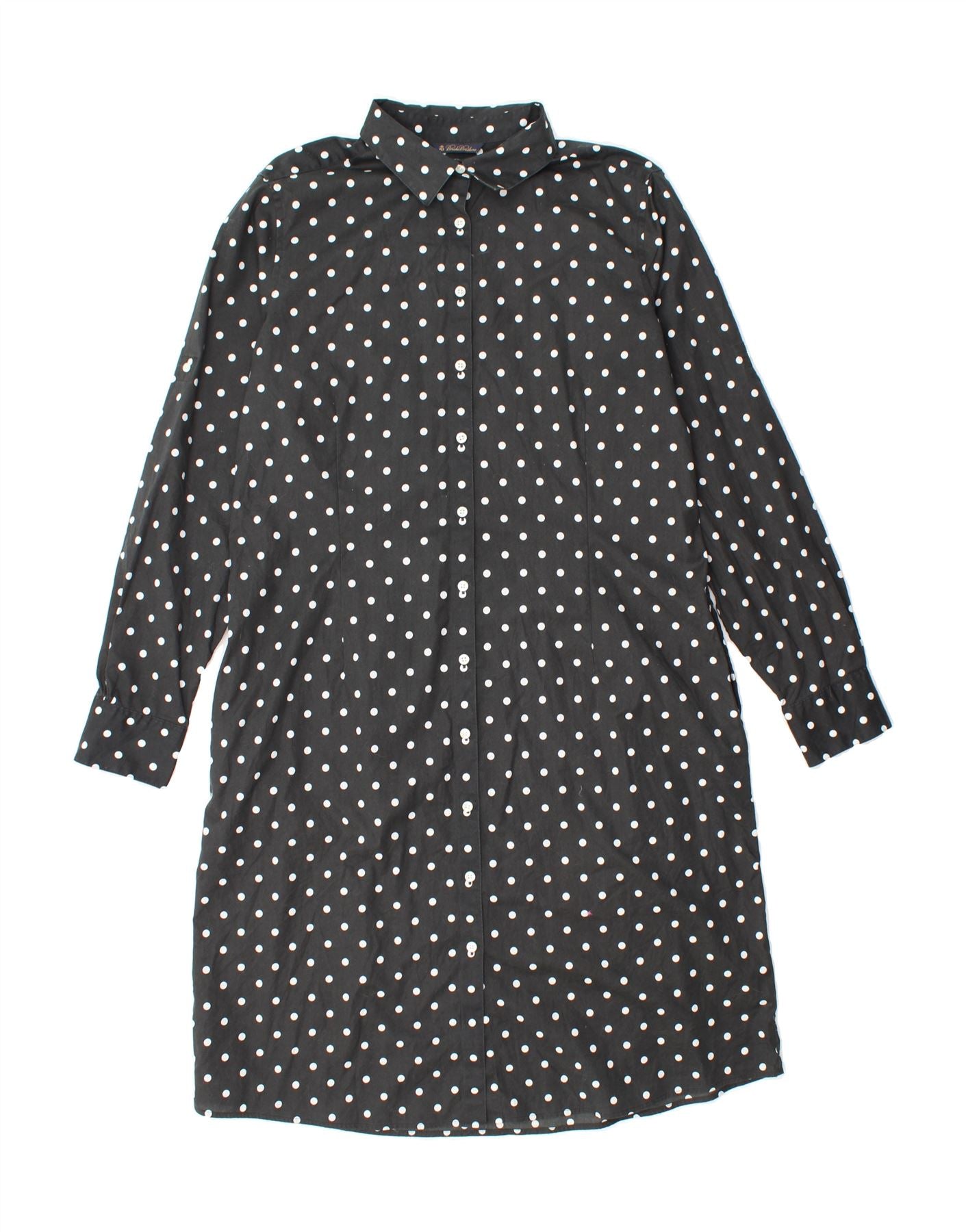 BROOKS BROTHERS Womens Long Sleeve Shirt Dress US 14 XL Black Polka Dot