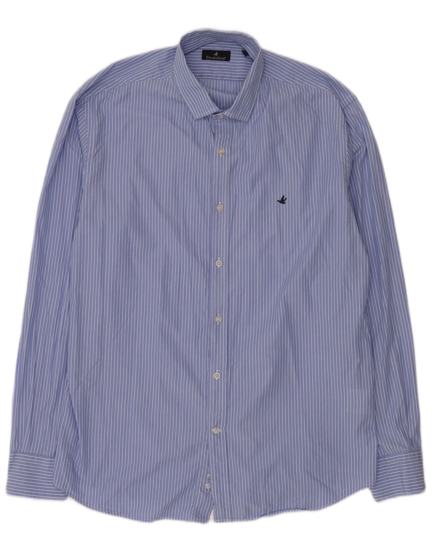 Brooksfield Herrenhemd aus mittelblauer Nadelstreifen-Baumwolle, klassisch
