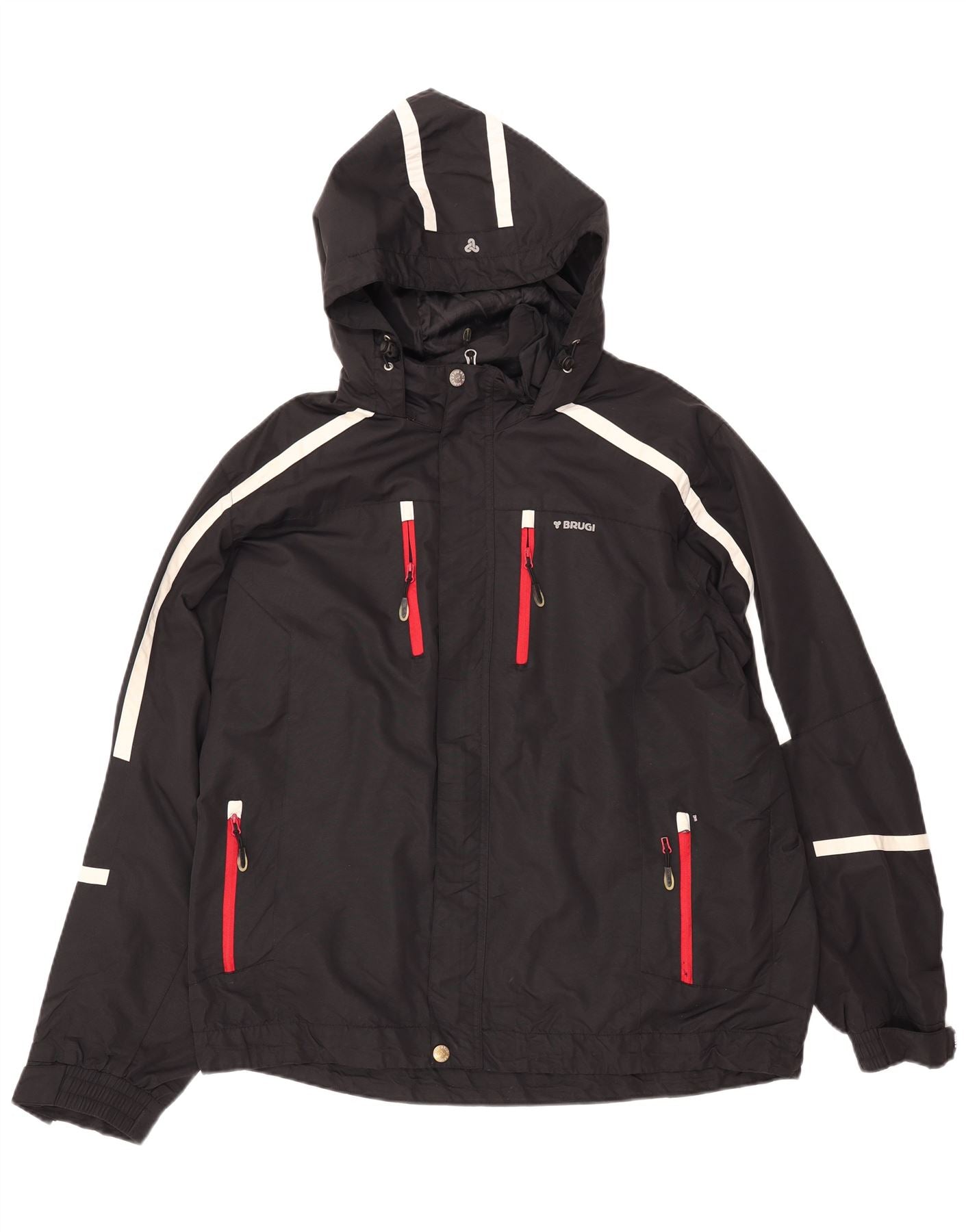 BRUGI Herren Regenjacke mit Kapuze UK 42 XL Schwarz gestreift
