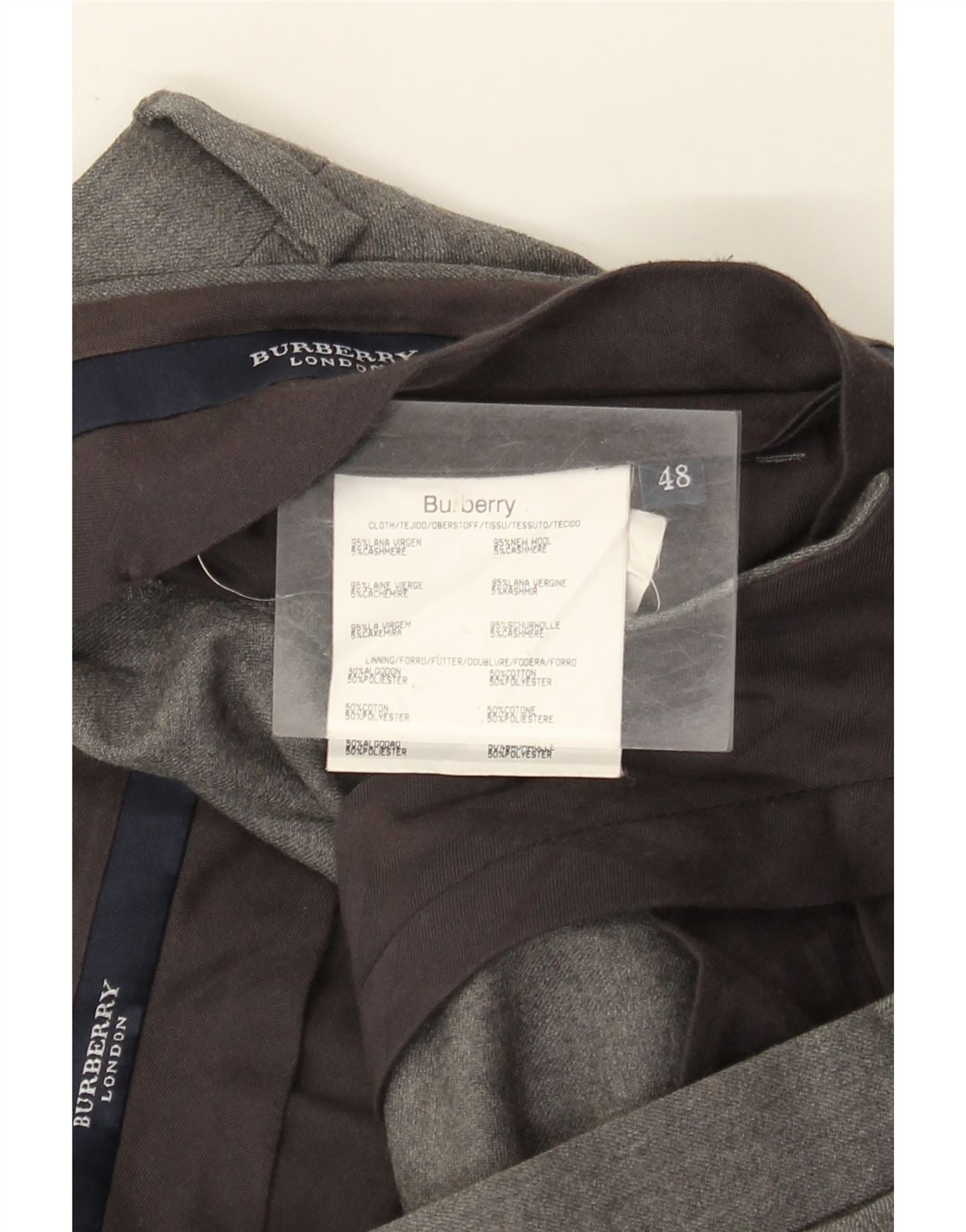 Burberry Herren-Anzughose mit Pegged-Anzug, Größe 48, mittelgroß, W36, L25, graue Schurwolle