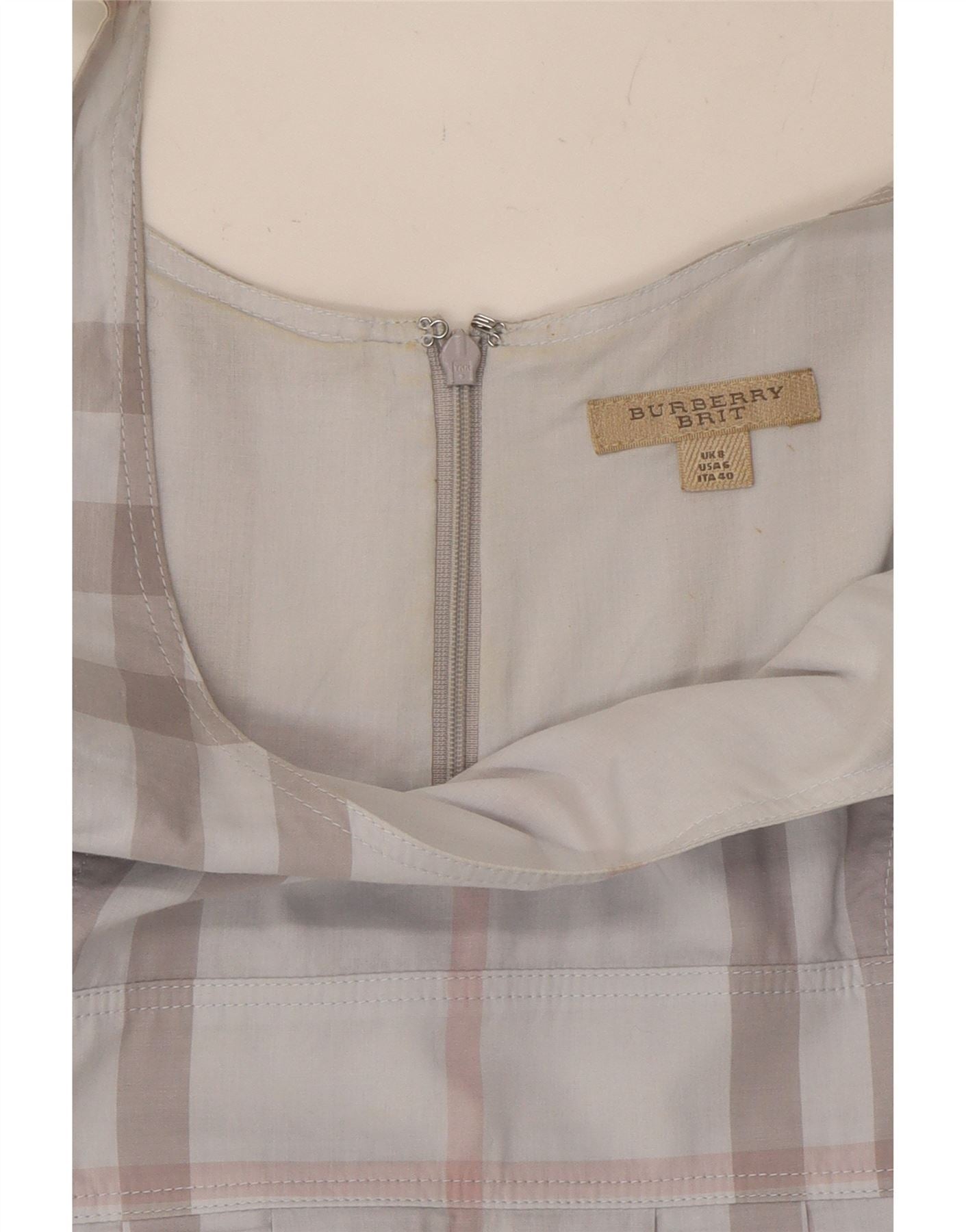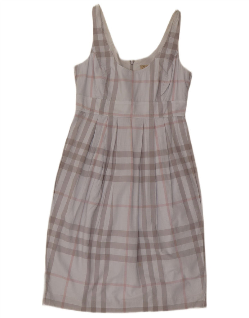 BURBERRY Womens BRIT Sleeveless Shift Dress UK 8 Small Grey Plaid Cotton