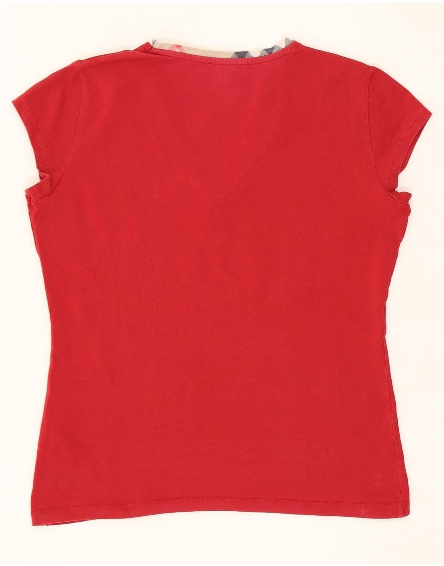 BURBERRY Womens Crop T-Shirt Top UK 16 Large Burgundy Cotton