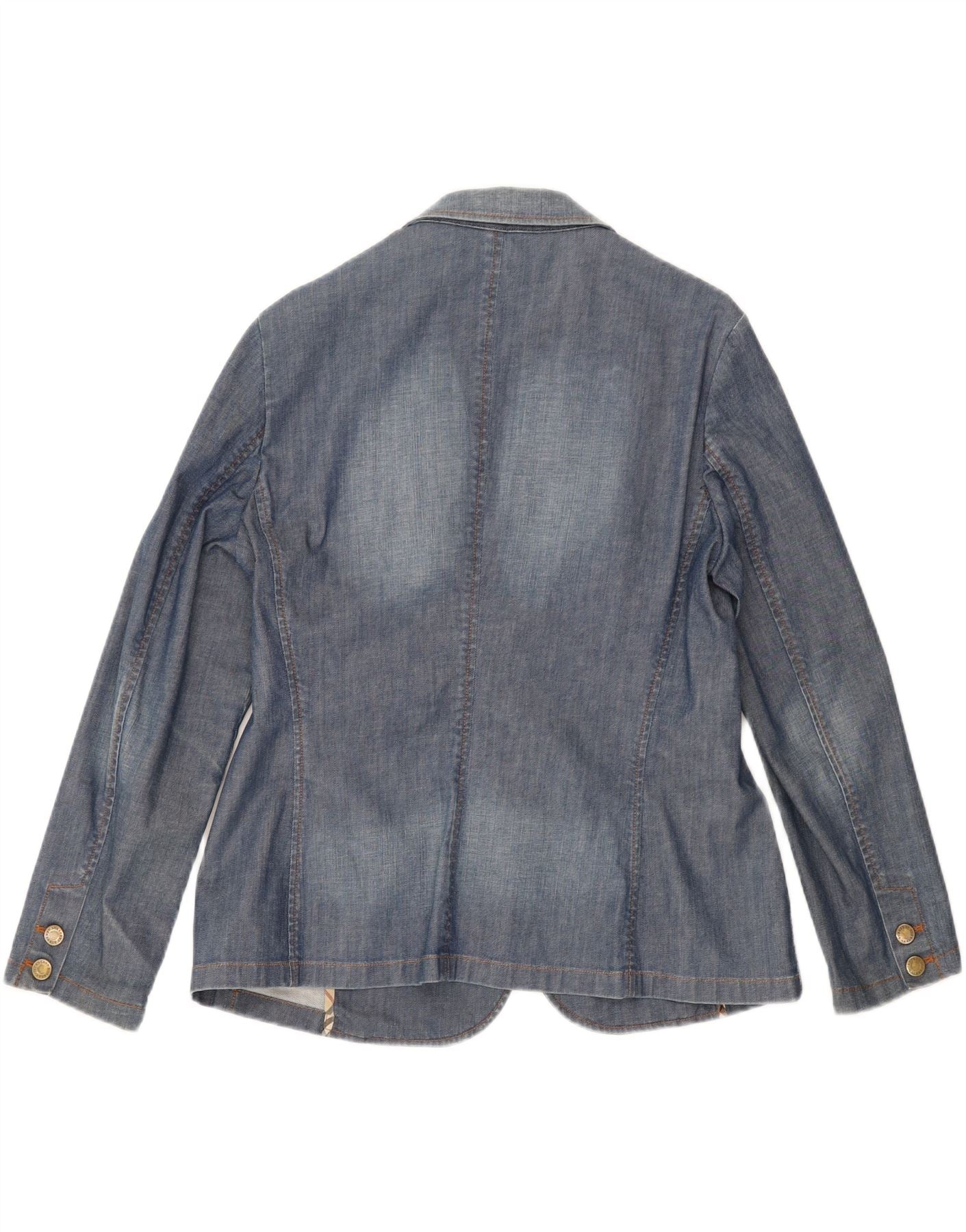 BURBERRY Womens Denim 2 Button Blazer Jacket UK 16 Large Blue Cotton