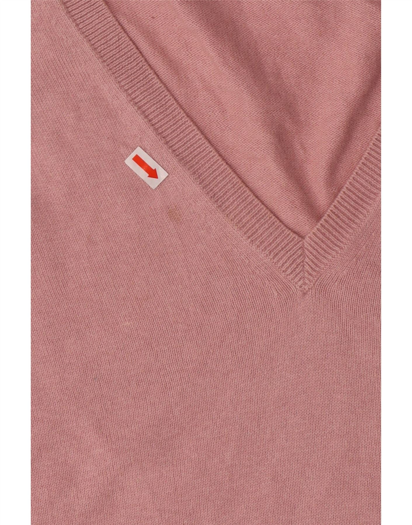 BURBERRY Womens V-Neck Jumper Sweater UK 10 Small Pink Cotton