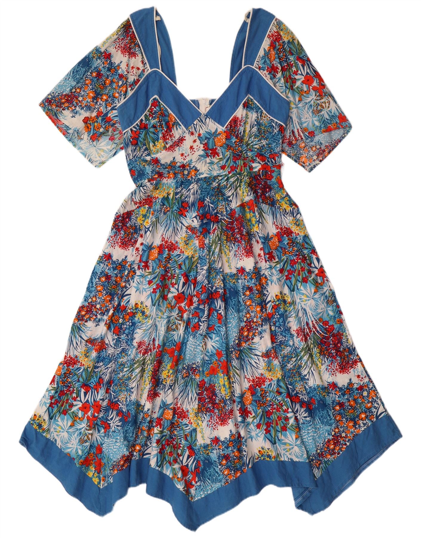 C&A Asymmetrisches Kleid für Damen, EU 40, mittelgroß, mehrfarbig, Blumenmuster, Baumwolle