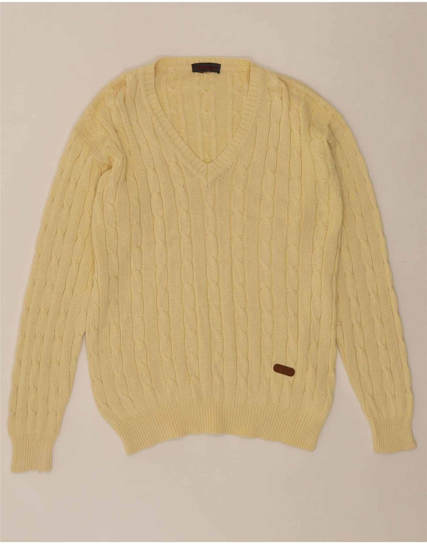 CACHAREL Mens V-Neck Jumper Sweater Large Yellow Cotton
