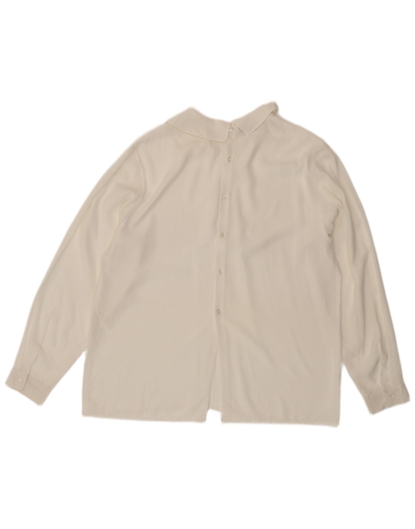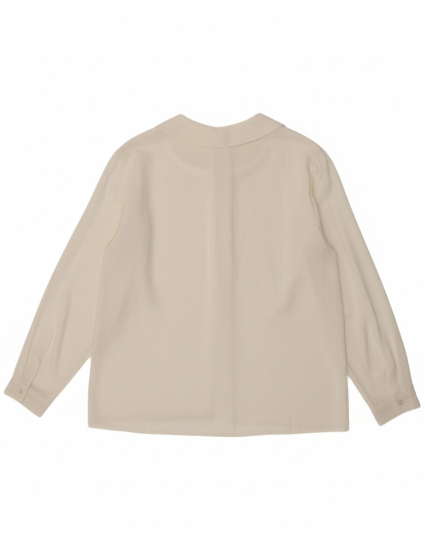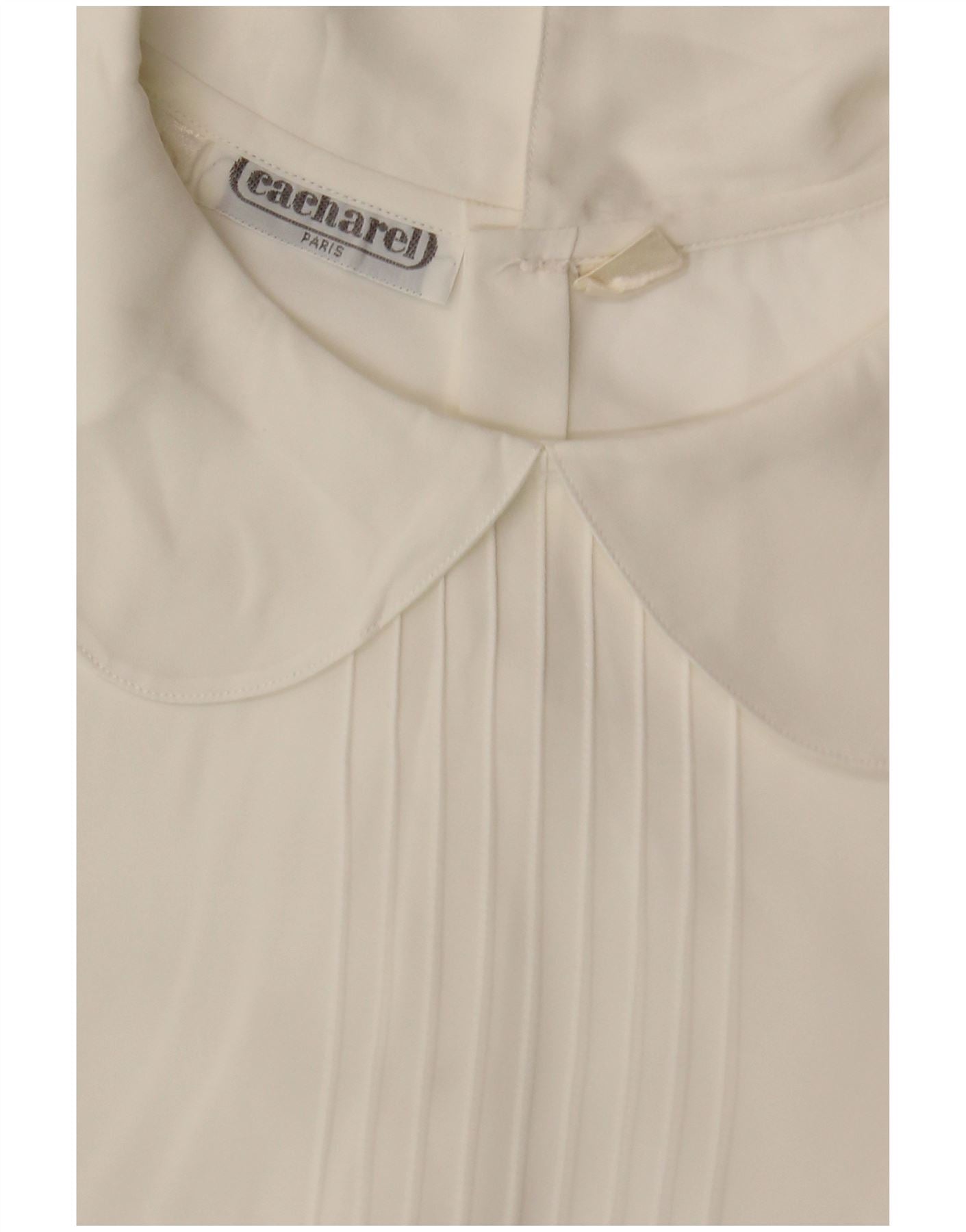- AI Description: This Cacharel womens blouse top is presented in a sophisticated off white woven fabric. It features a classic collared neckline and long sleeves. The regular fit ensures comfortable wear. Button closures offer a neat finish. Subtle pleated accents add a refined touch to this elegant design.