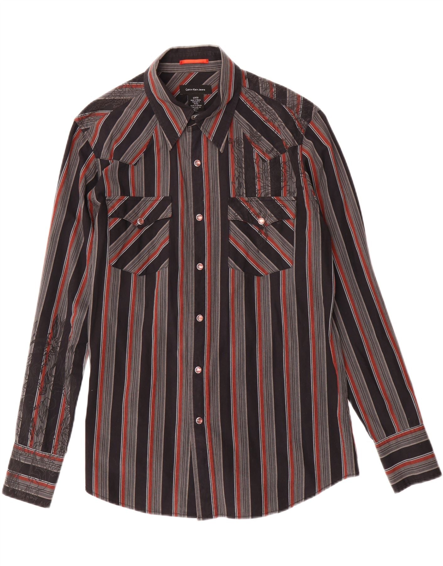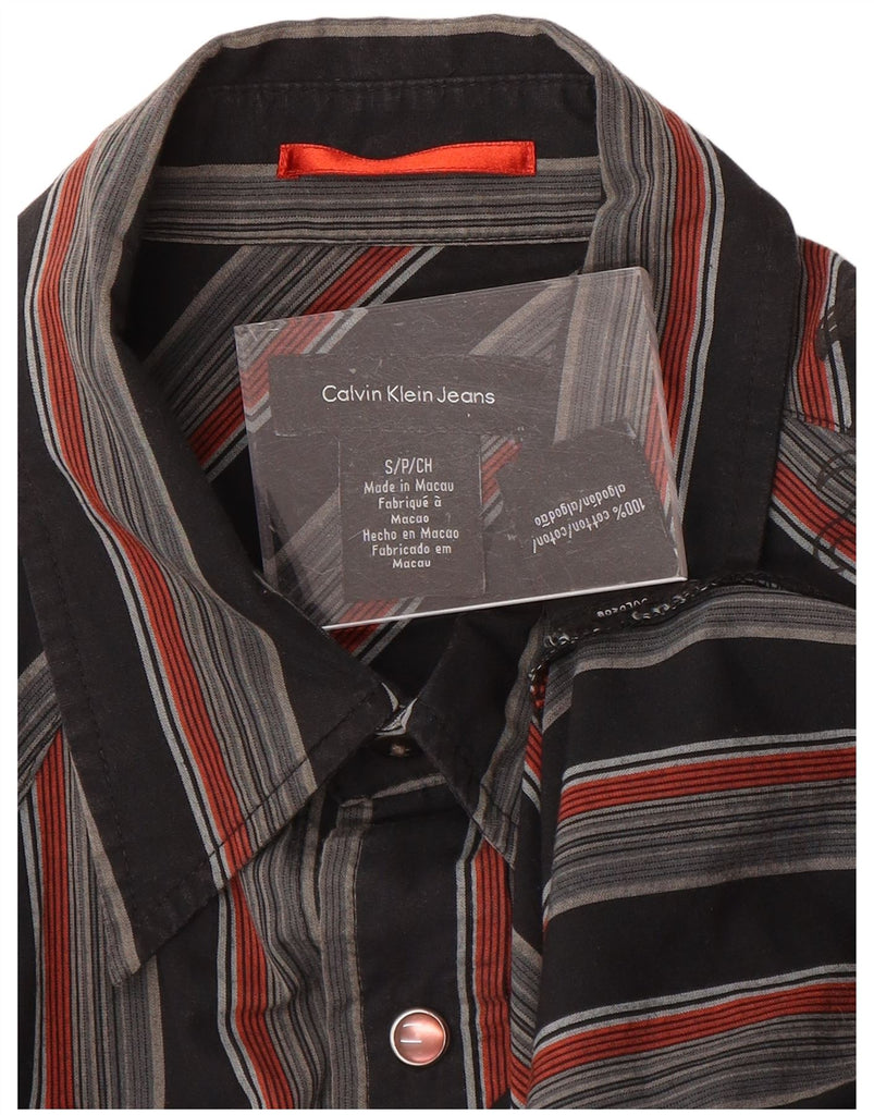 CALVIN KLEIN JEANS Herren-Grafikhemd, klein, schwarz, gestreift, Baumwolle