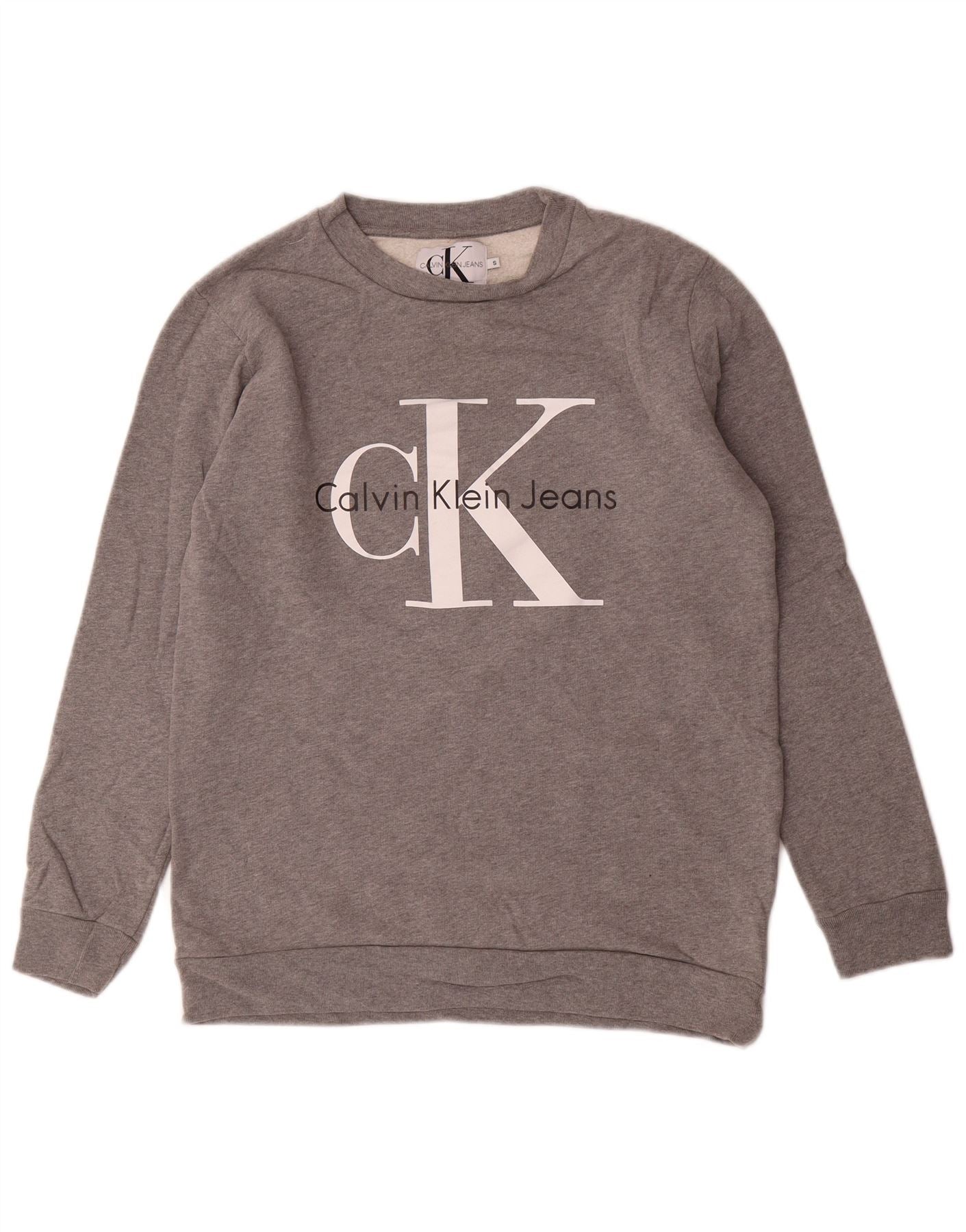 CALVIN KLEIN JEANS Herren-Sweatshirt mit Grafik, Größe S, graue Baumwolle
