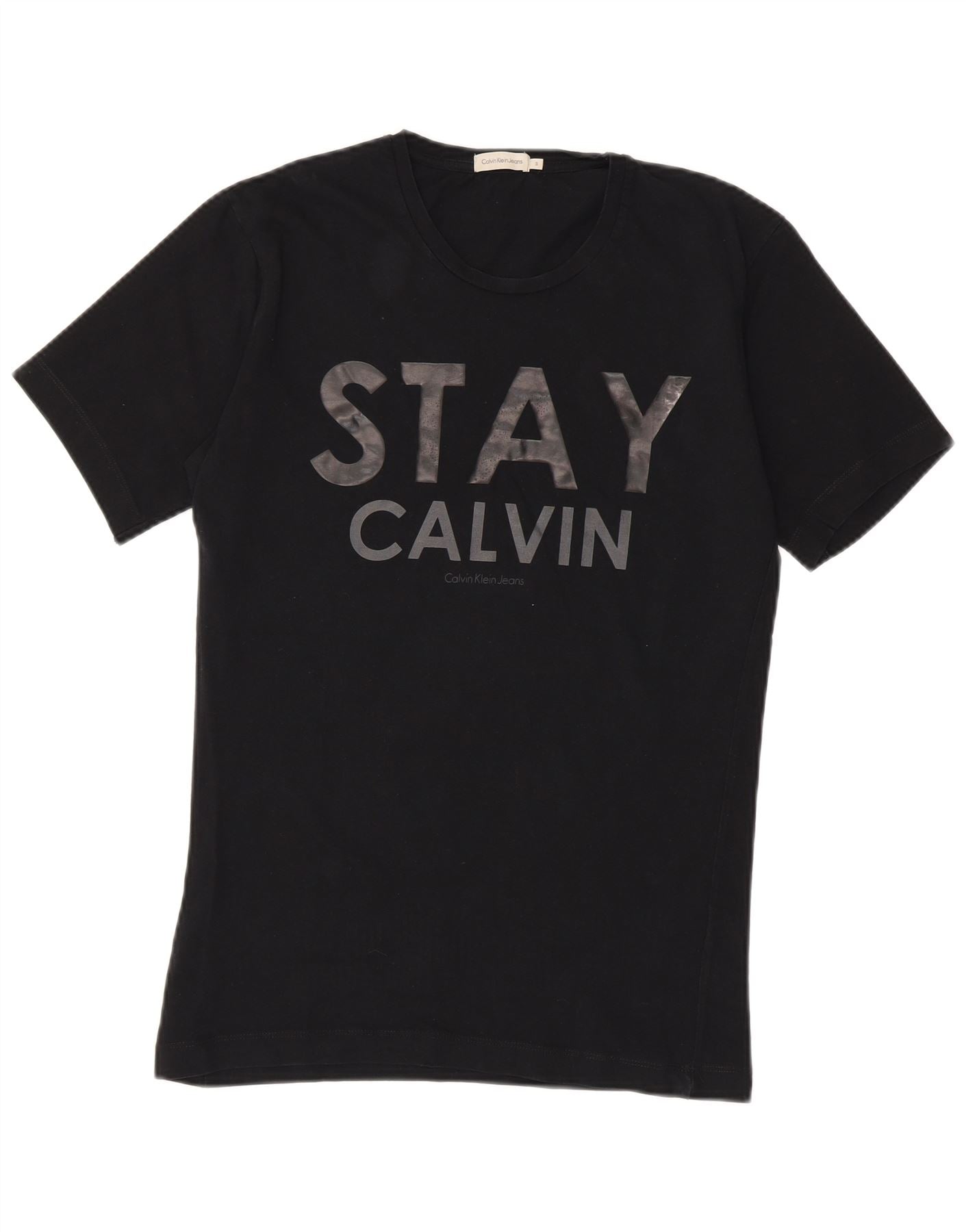 CALVIN KLEIN JEANS Herren Grafik T-Shirt Top Small Schwarz Baumwolle