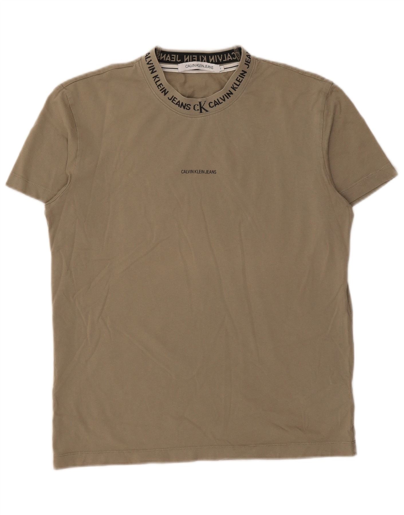 CALVIN KLEIN JEANS Herren Grafik T-Shirt Top Small Khaki Baumwolle