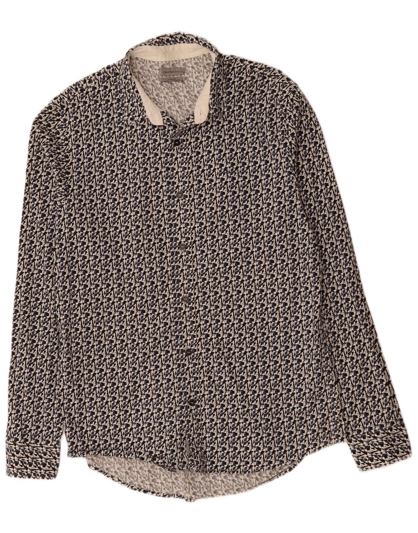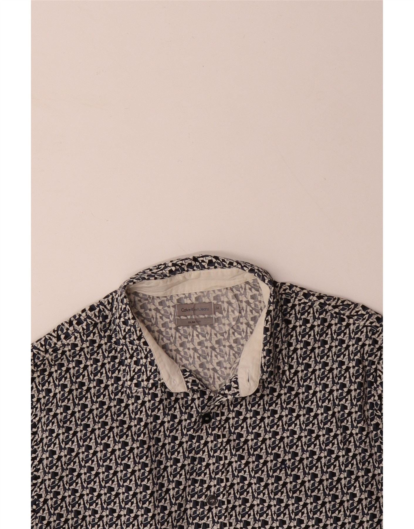 CALVIN KLEIN JEANS Herren Slim Fit Hemd Mittelschwarze geometrische Baumwolle