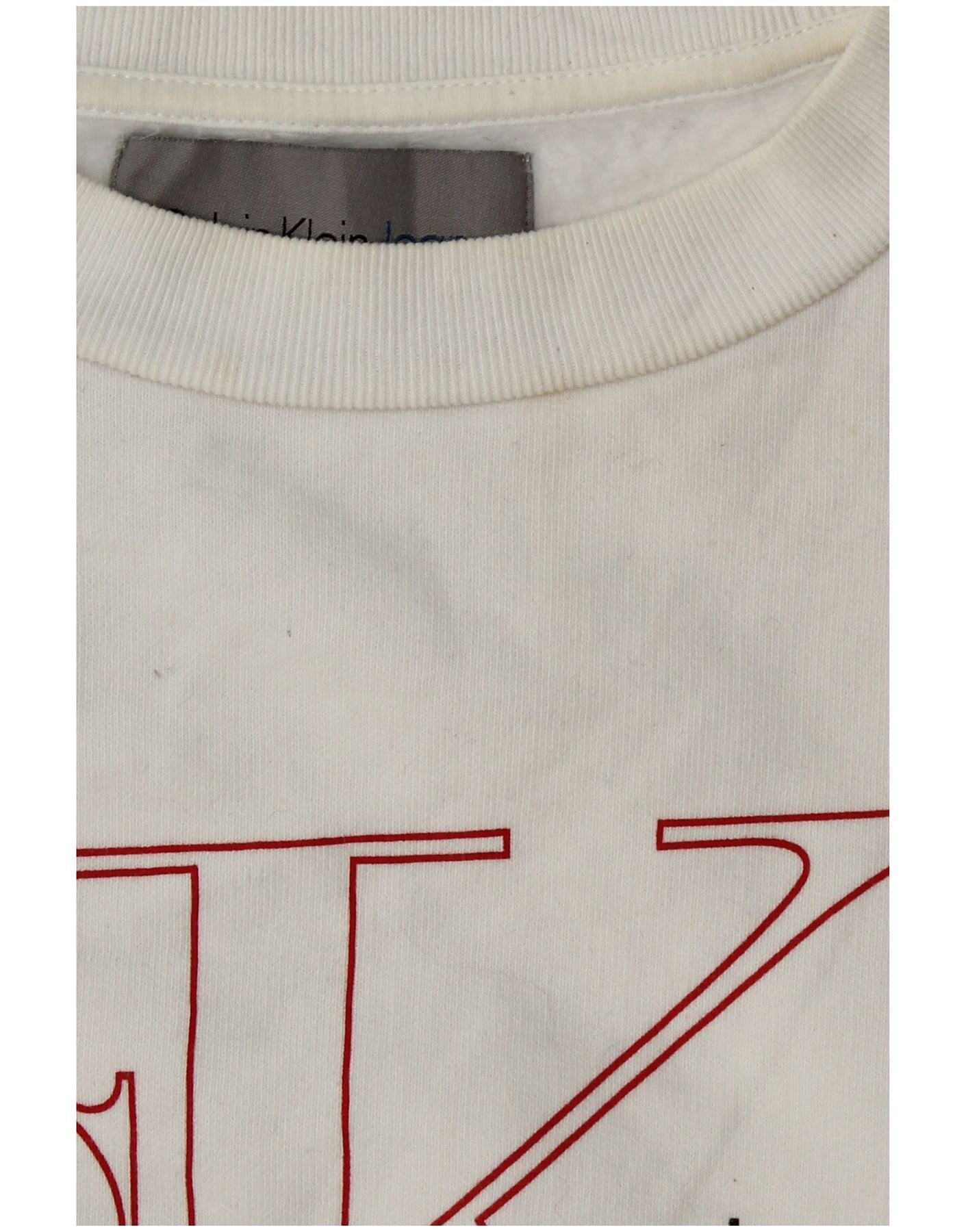 CALVIN KLEIN JEANS Damen Crop Graphic Sweatshirt Pullover UK 6 XS Weiß