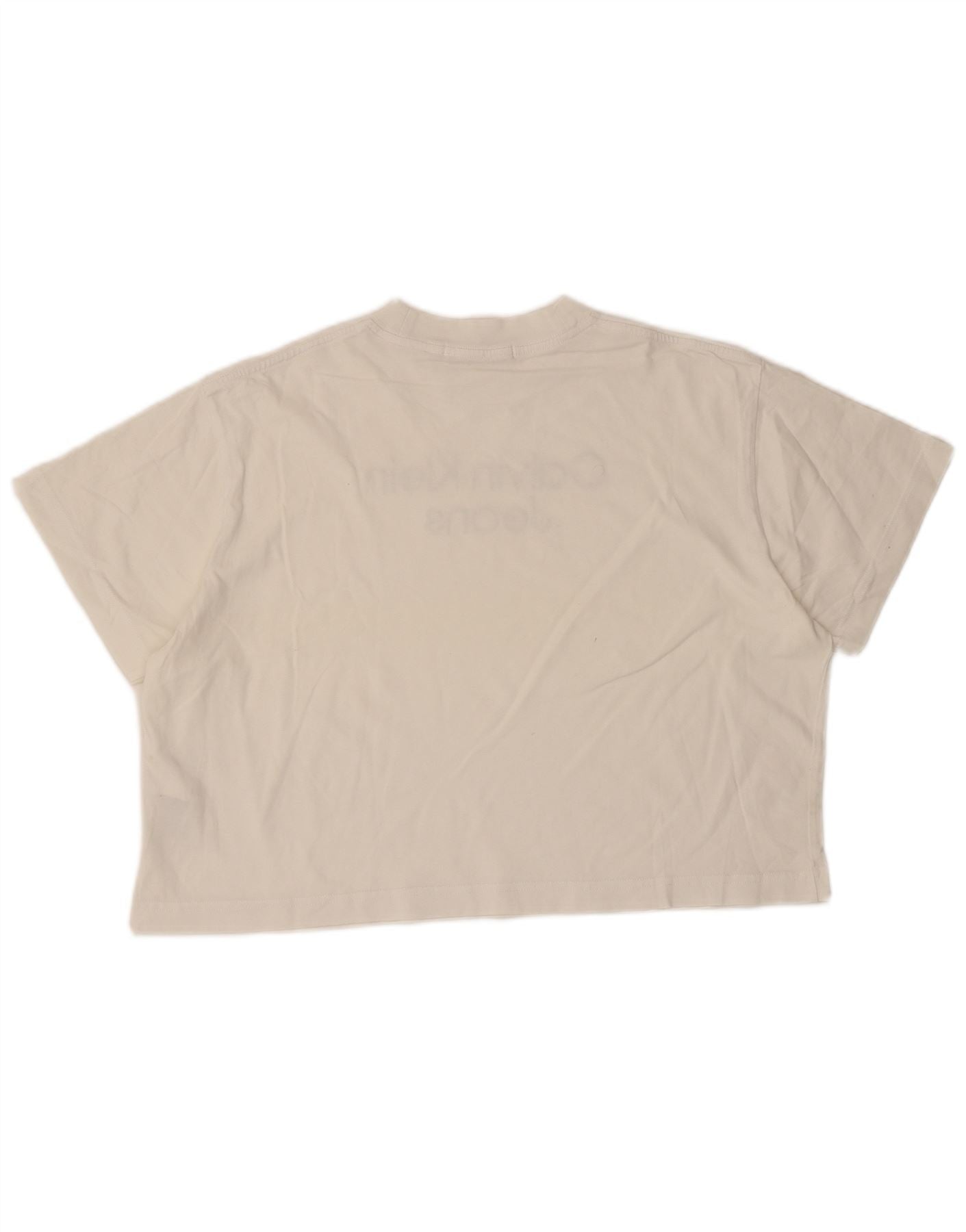 Calvin Klein Jeans Damen Crop Graphic T-Shirt Top UK 14 Mittelweiß