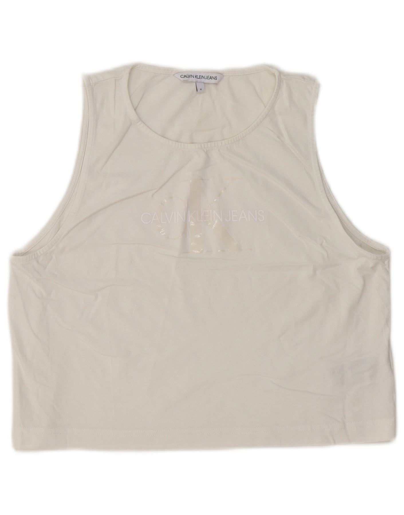 Calvin Klein Jeans Damen Crop Graphic Vest Top UK 12 Mittelweiße Baumwolle