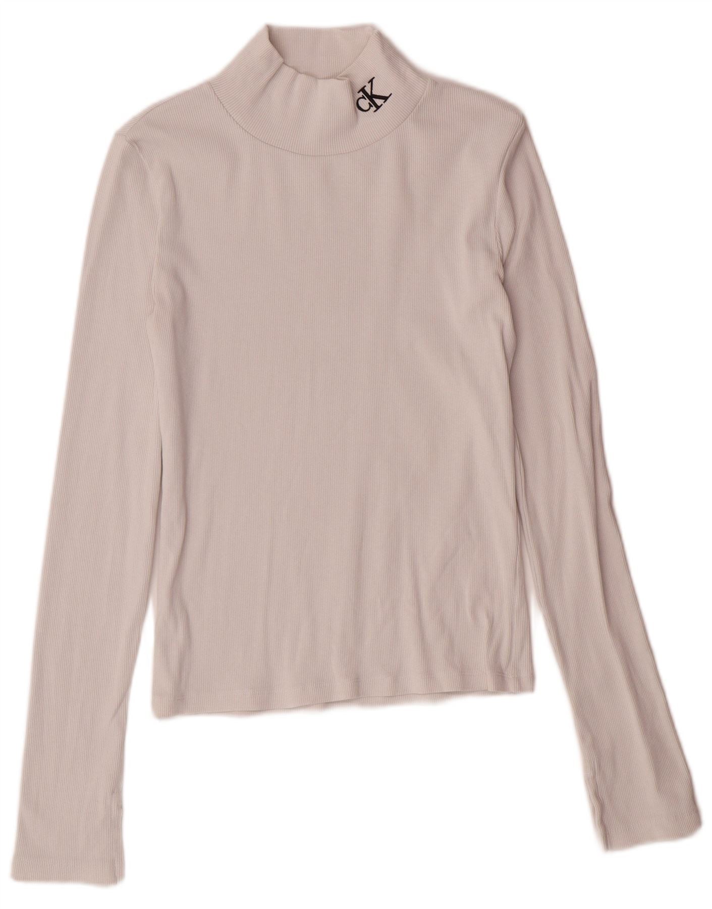 CALVIN KLEIN JEANS Damen Crop Top Langarm UK 12 Mittelweiß