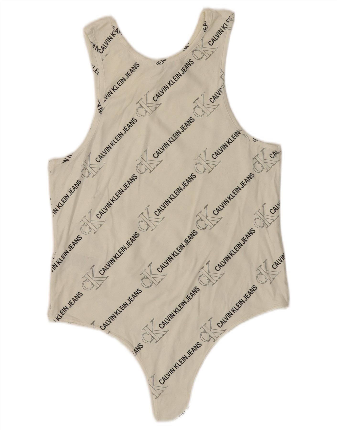 CALVIN KLEIN JEANS Damen-Body mit Grafik, ärmellos, Gr. 14, Weiß
