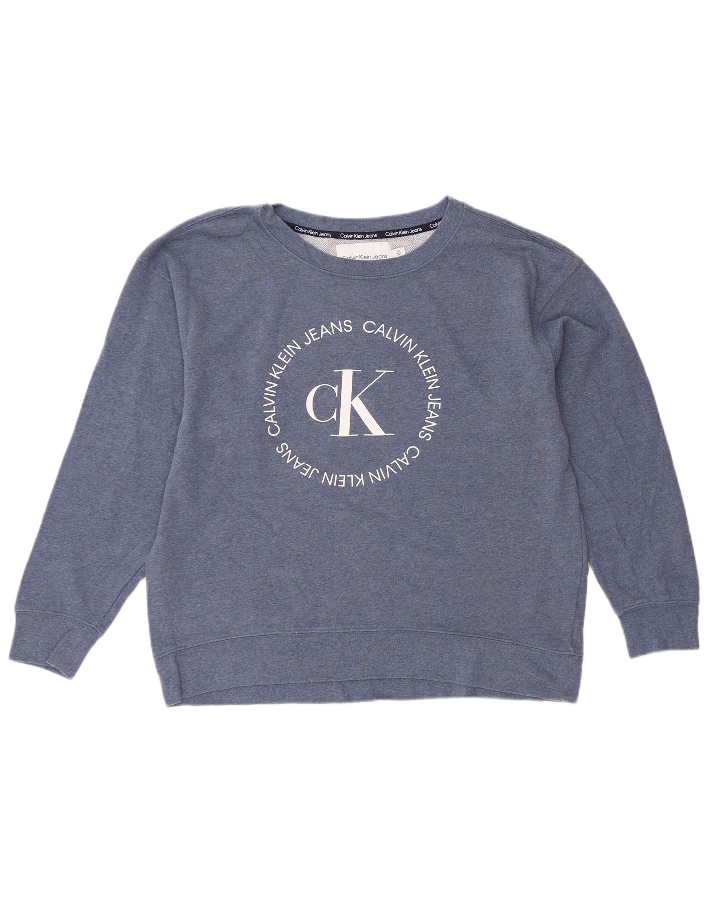 CALVIN KLEIN JEANS Damen Grafik-Sweatshirt-Pullover UK 16 Large Blau