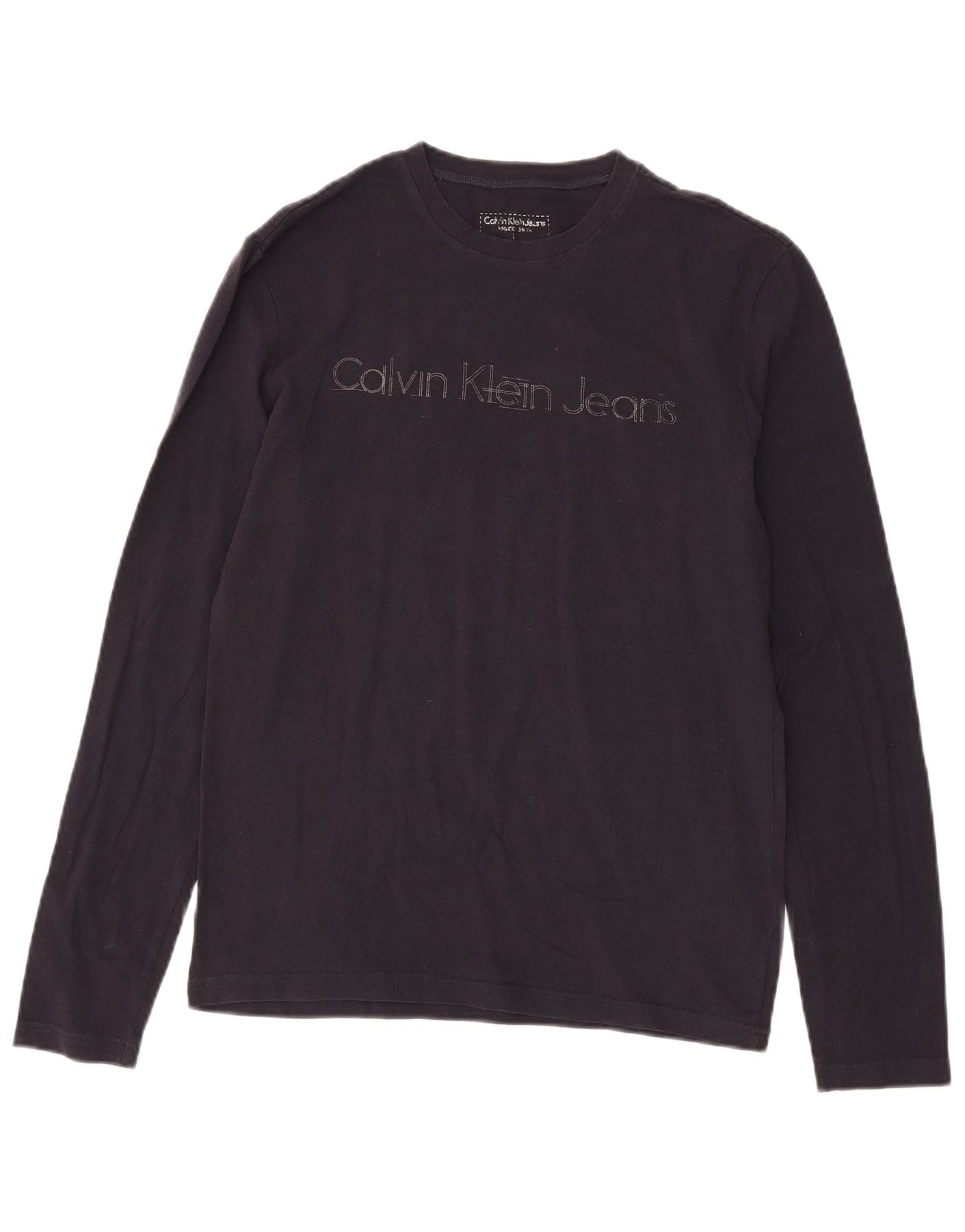 CALVIN KLEIN JEANS Damen Grafik-Top Langarm UK 14 Large Marineblau