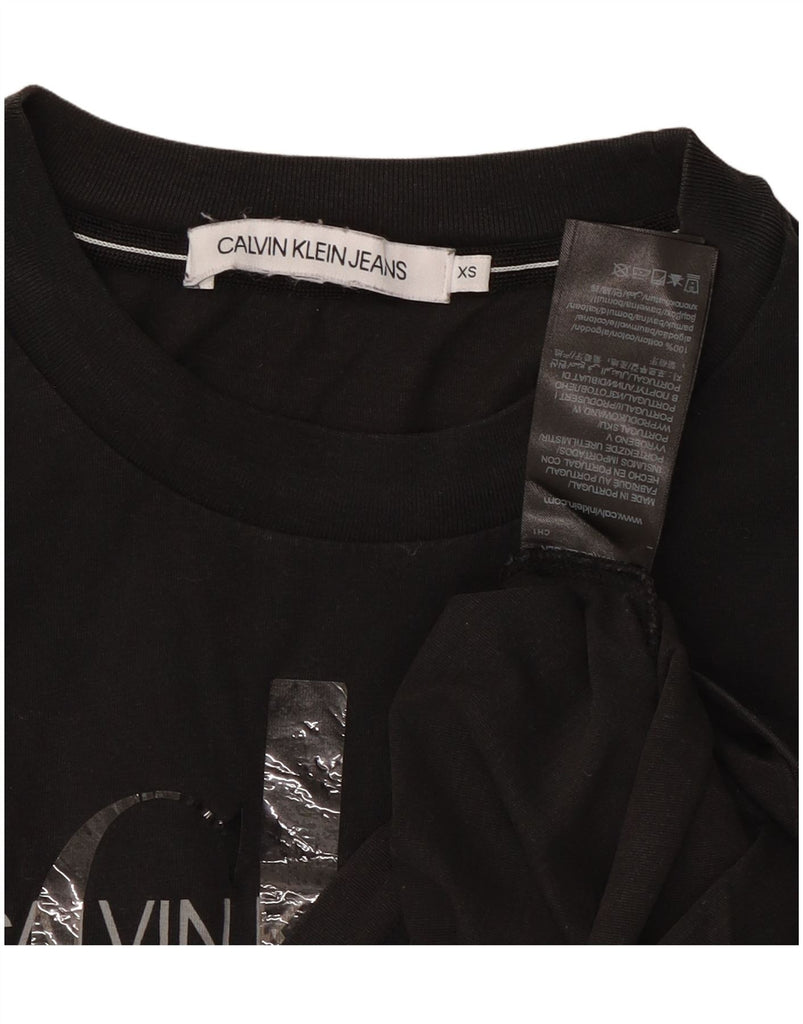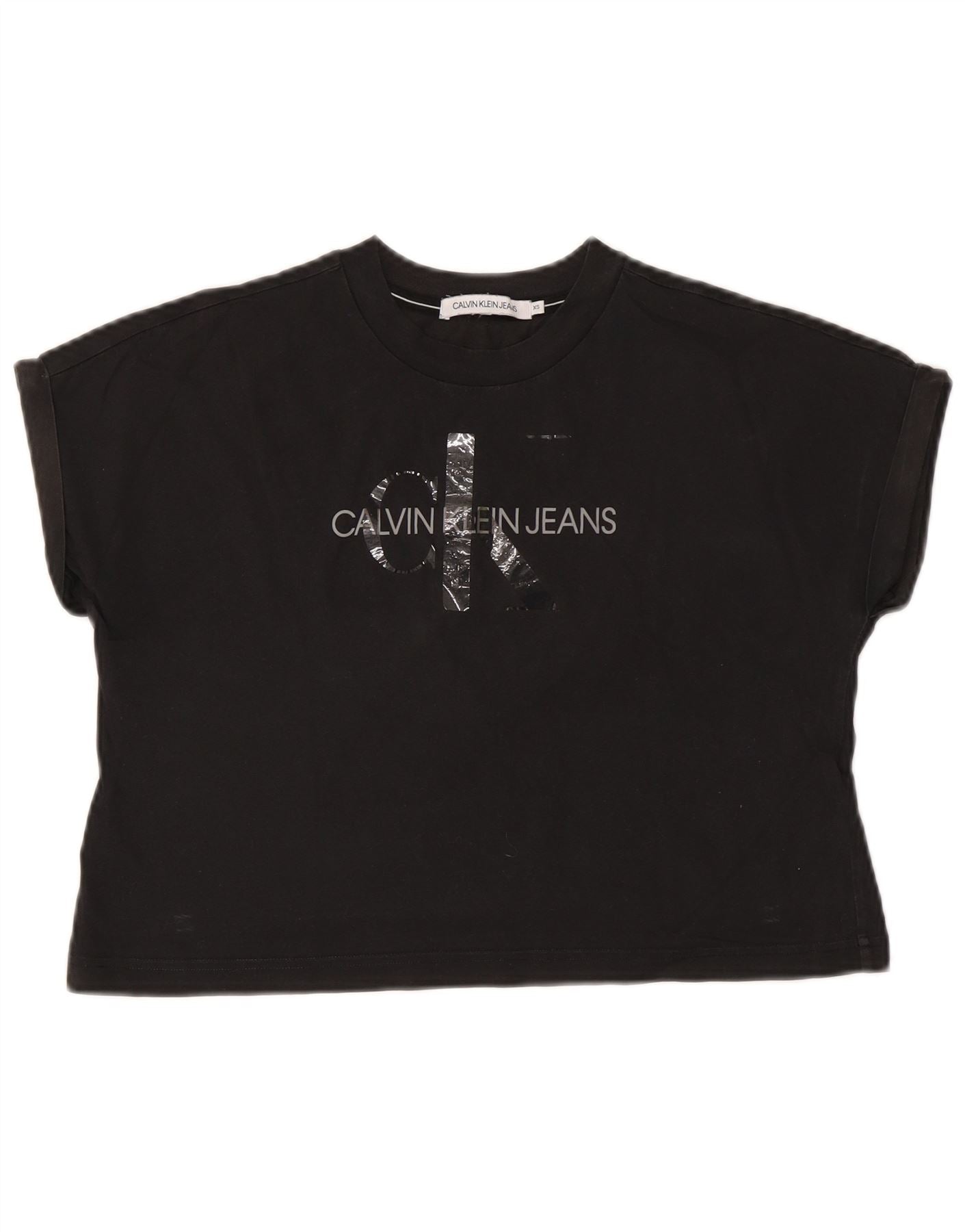 CALVIN KLEIN JEANS Womens Oversized Crop Graphic T-Shirt Top UK 6 XS Black