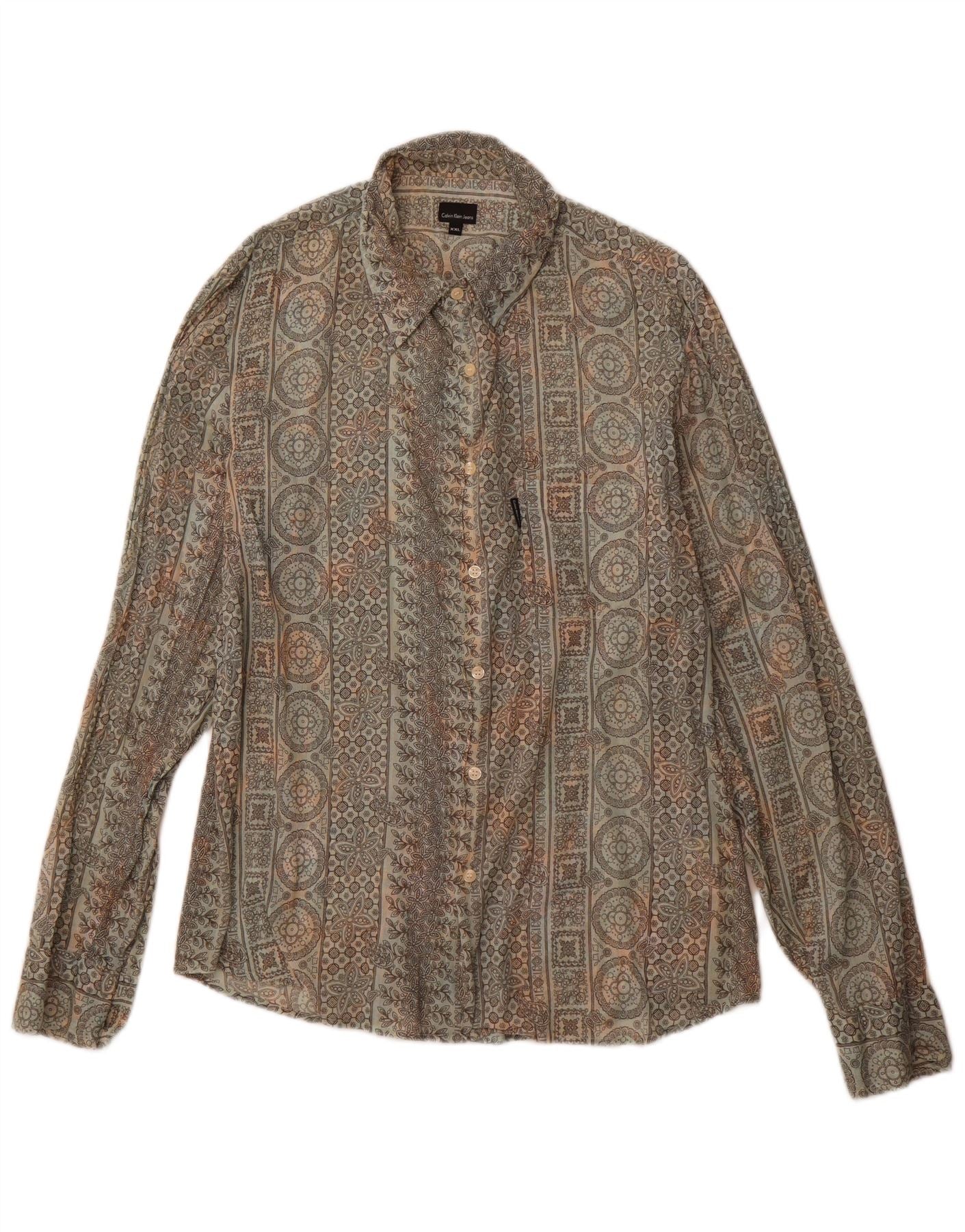 CALVIN KLEIN JEANS Damenhemd UK 20 2XL Grau geblümte Baumwolle