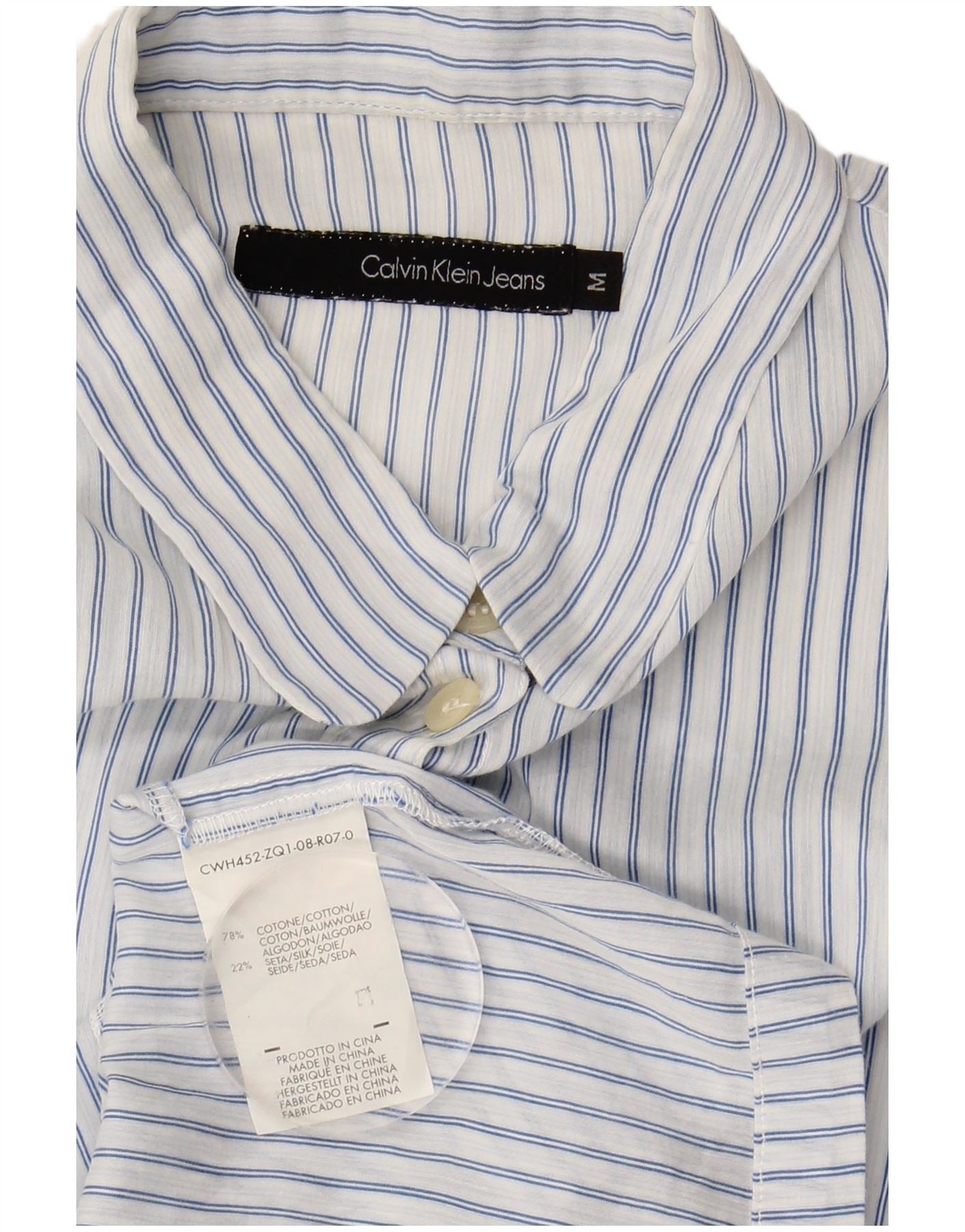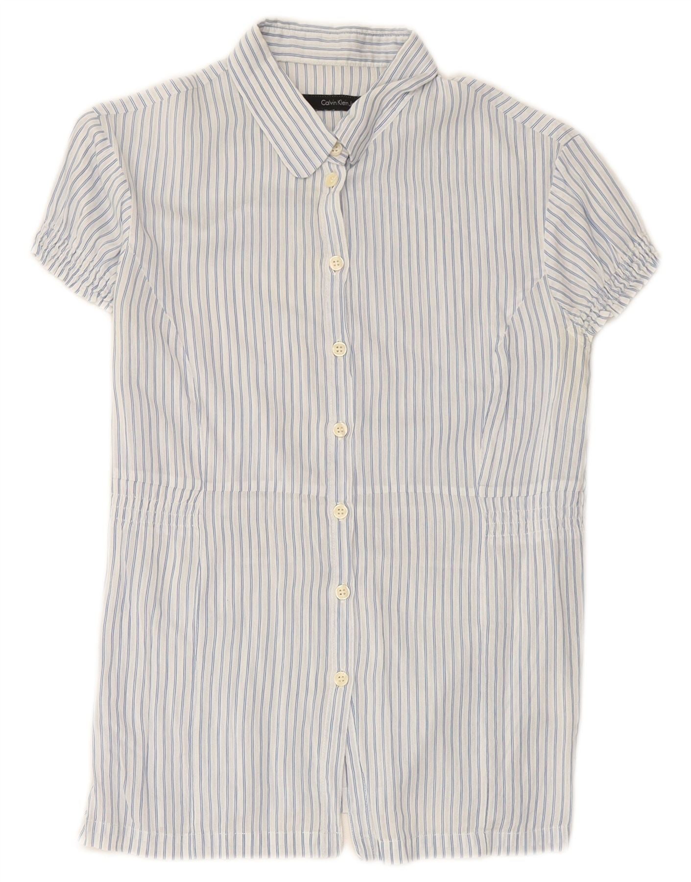 CALVIN KLEIN JEANS Damen Kurzarmhemd UK 12 Mittelblauer Nadelstreifen
