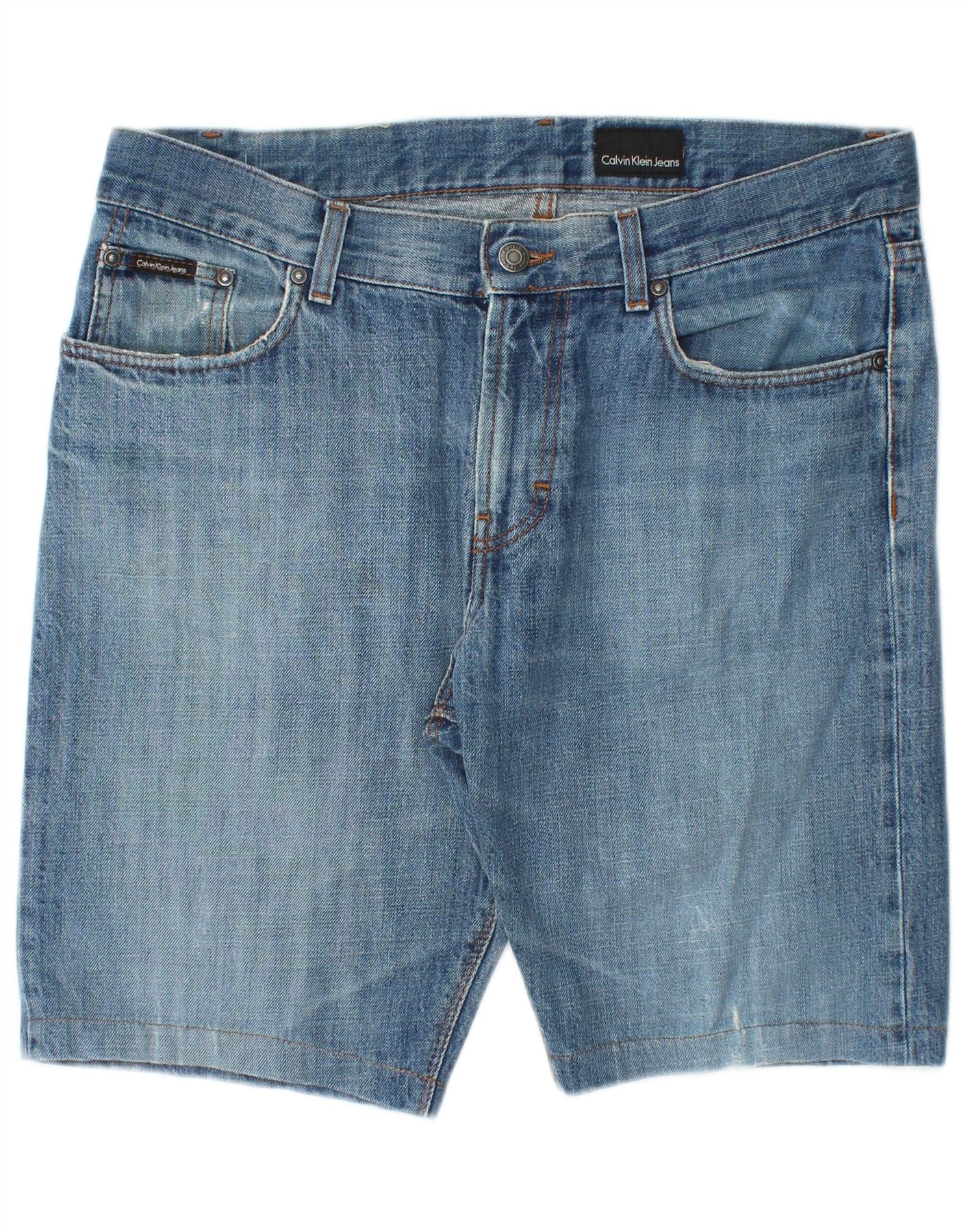 CALVIN KLEIN Herren Jeansshorts W34 Große blaue Baumwolle