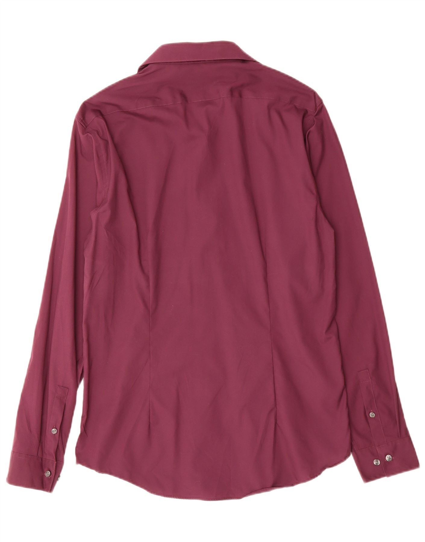 CALVIN KLEIN Tailliertes Herrenhemd Größe 39 15 1/2 Mittlere burgunderrote Baumwolle
