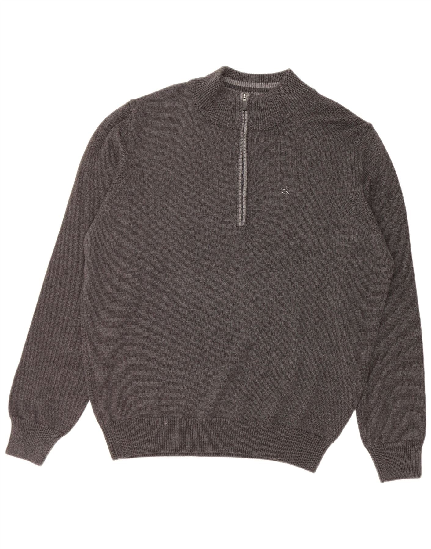 CALVIN KLEIN Herren Golf-Pullover mit Reißverschluss, 2XL, graue Baumwolle