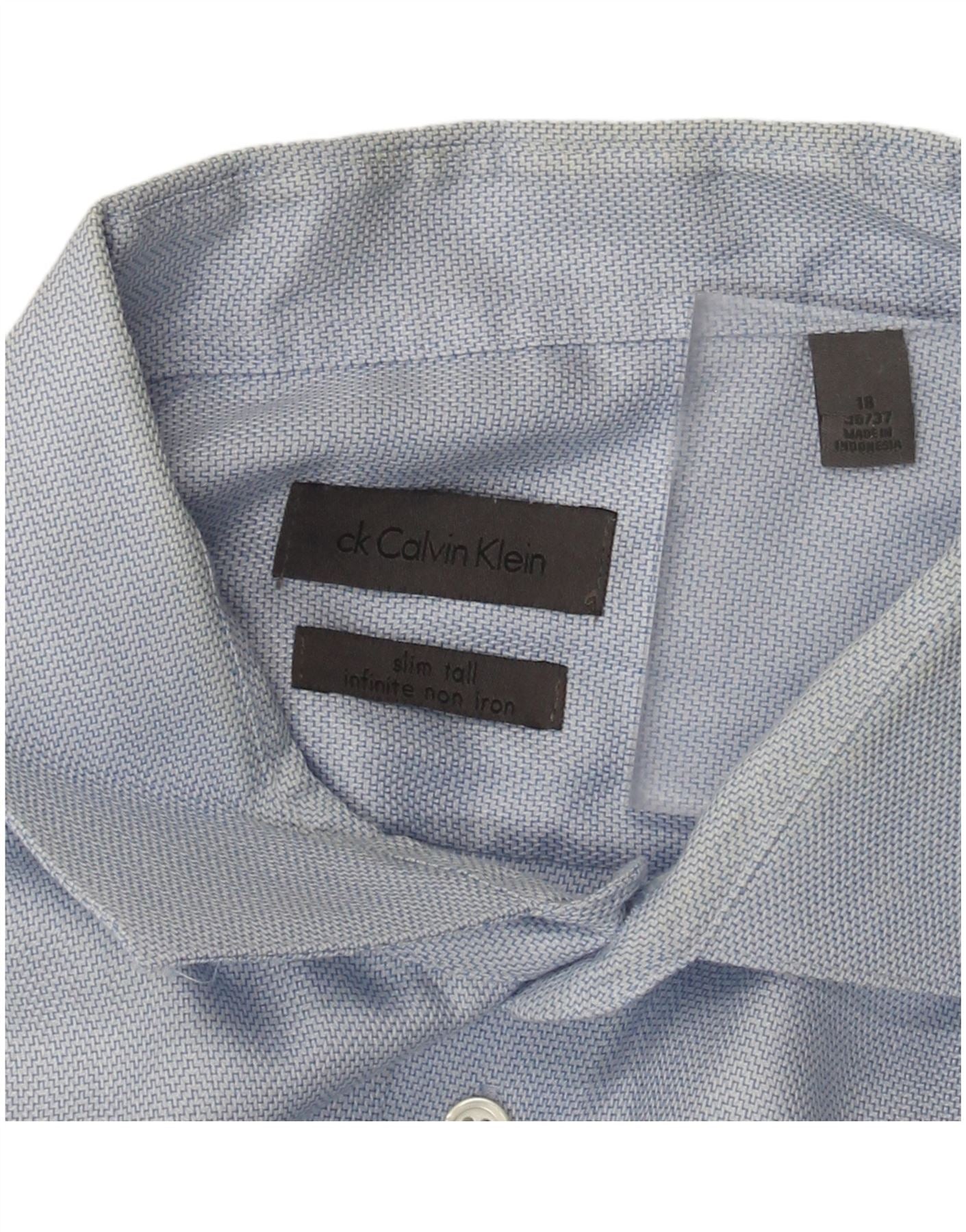 Calvin Klein Herren NON - IRON Slim Hemd Größe 18 2XL Blaue Baumwolle