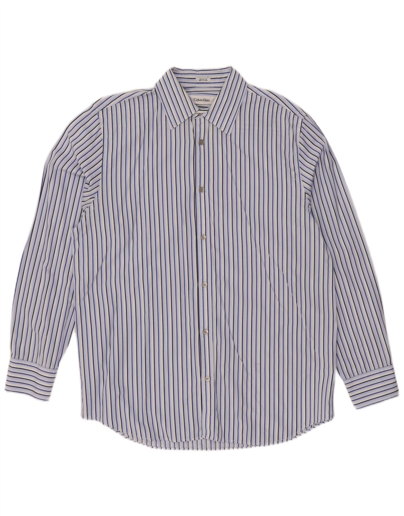 CALVIN KLEIN Herrenhemd mittelblau gestreift aus Baumwolle