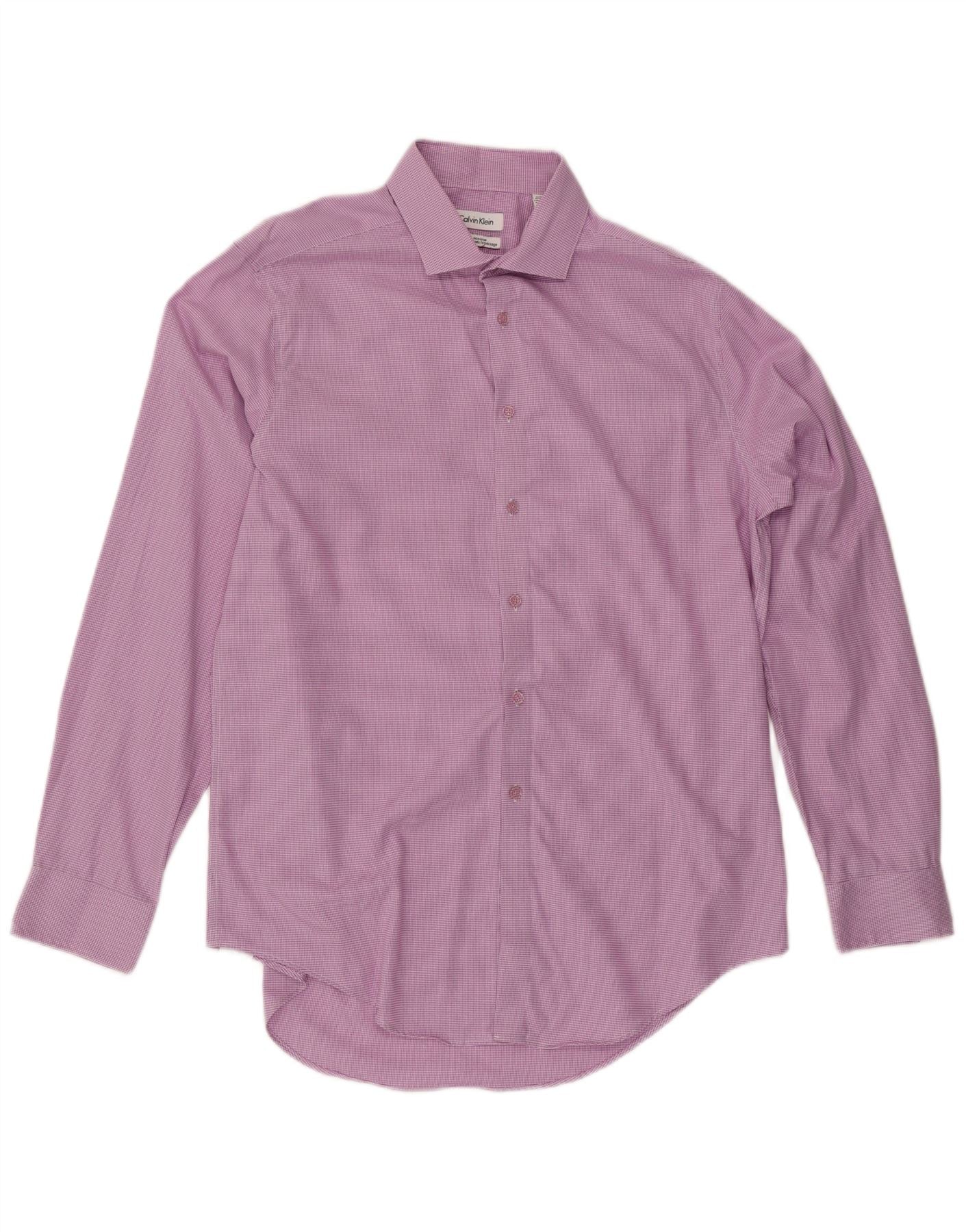 CALVIN KLEIN Herren Slim Fit Hemd Größe 16 1/2 Large Lila Hahnentritt