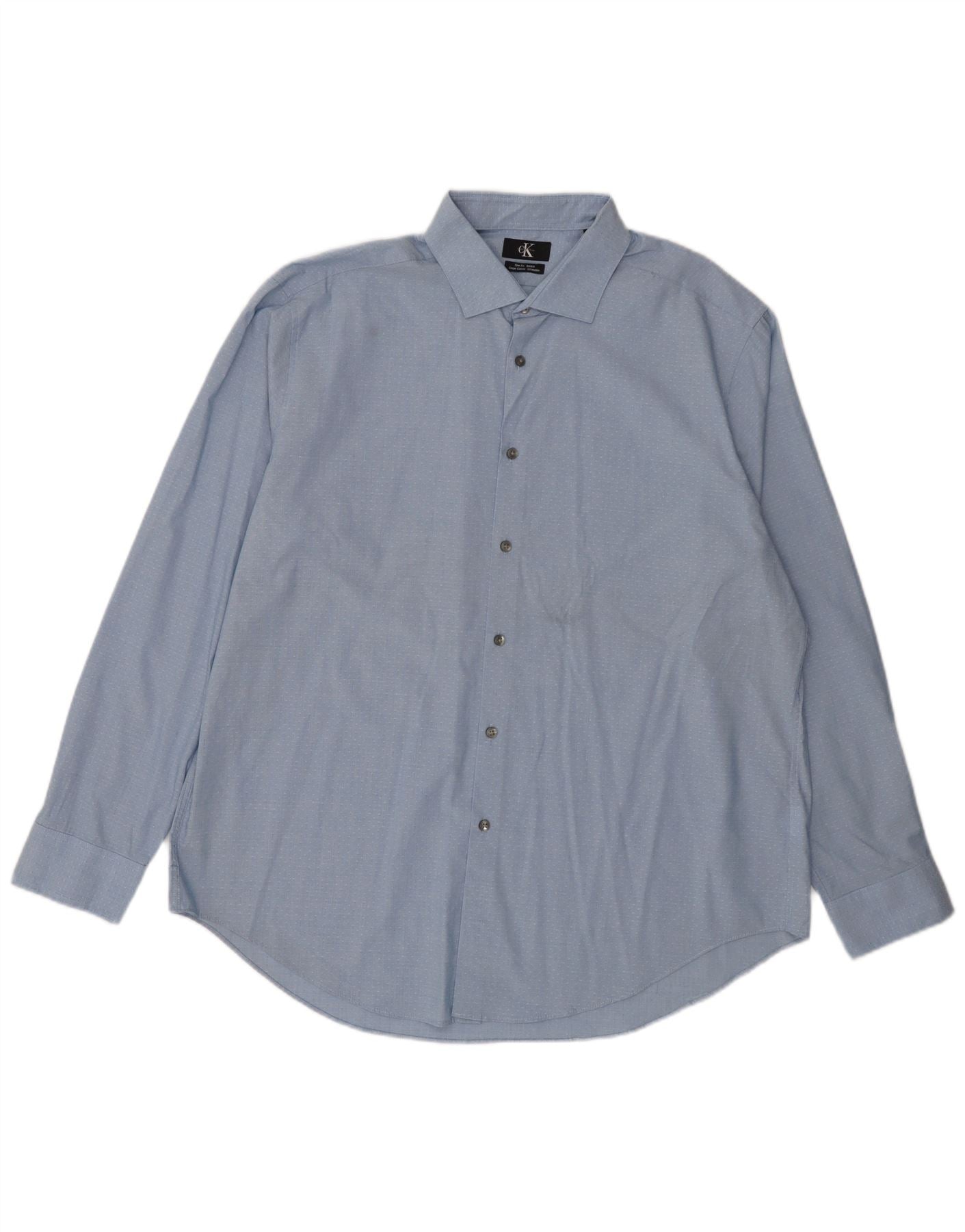 CALVIN KLEIN Herren Slim Fit Hemd Größe 18 2XL blau gepunktete Baumwolle