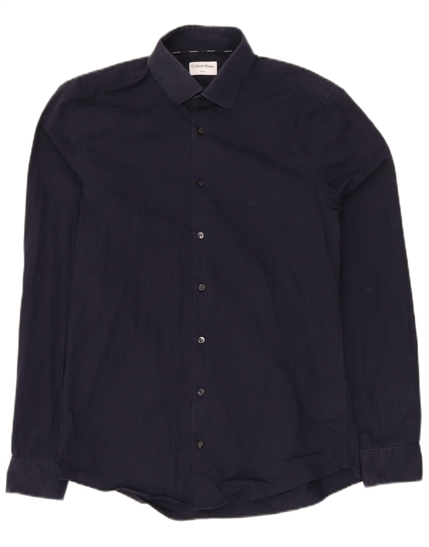 CALVIN KLEIN Herren Slim Fit Hemd Größe 39 Medium Marineblau Baumwolle