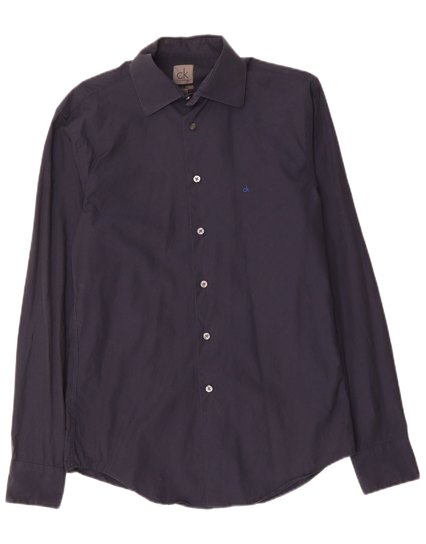CALVIN KLEIN Herren Slim Fit Hemd Small Marineblau Baumwolle