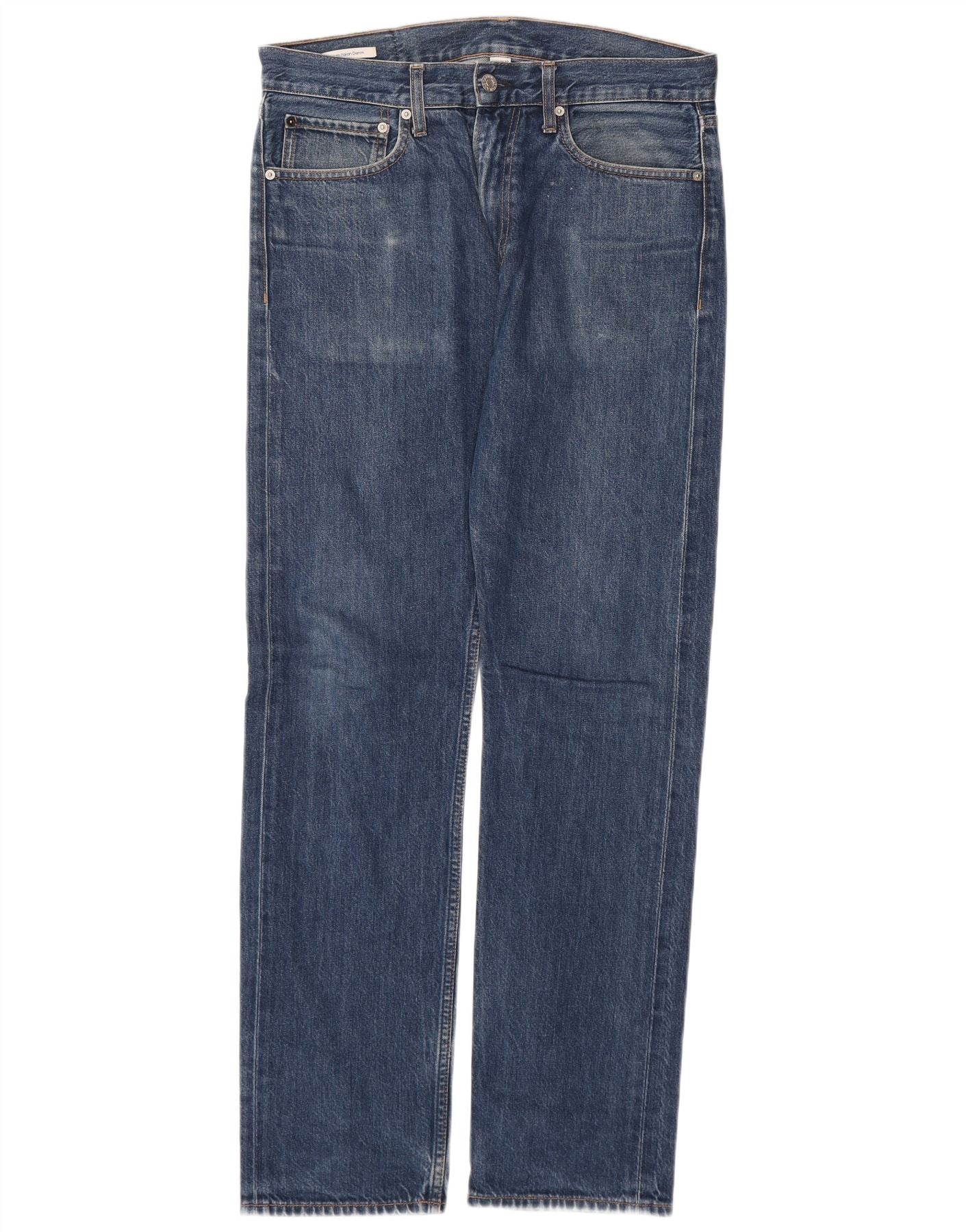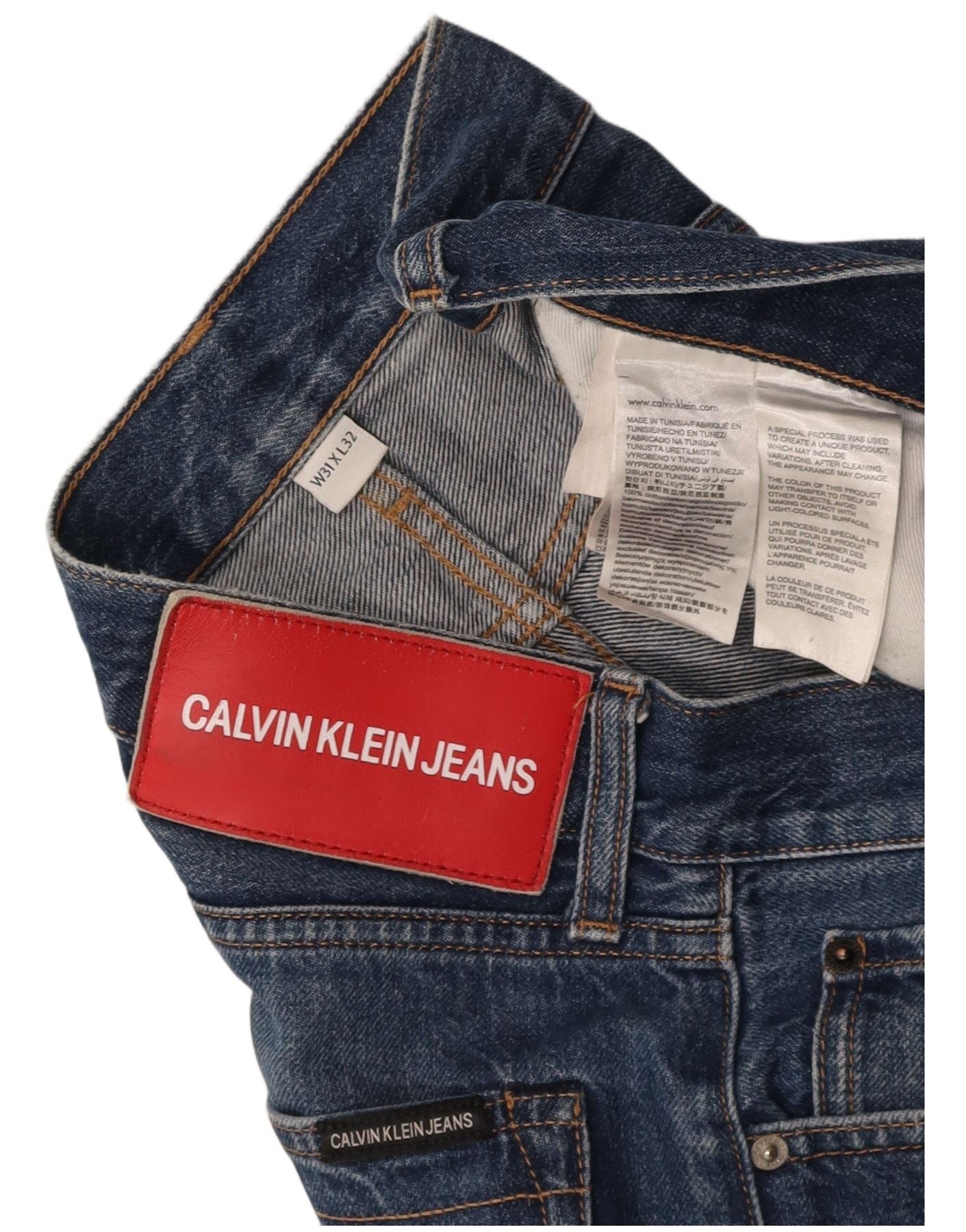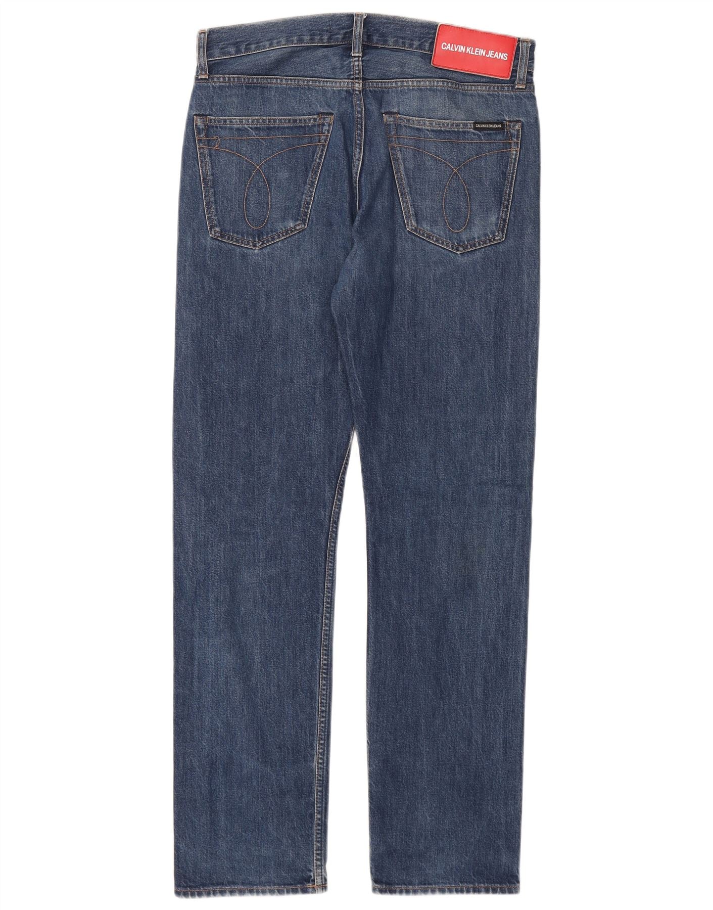- AI Description: These Calvin Klein Jeans men's straight jeans are crafted from classic blue denim. They feature a regular fit through the leg, offering timeless comfort. The zip closure ensures a smooth front. Traditional pockets provide practicality. A subtle brand logo adds a signature touch. This classic style provides versatile wear for any casual occasion.