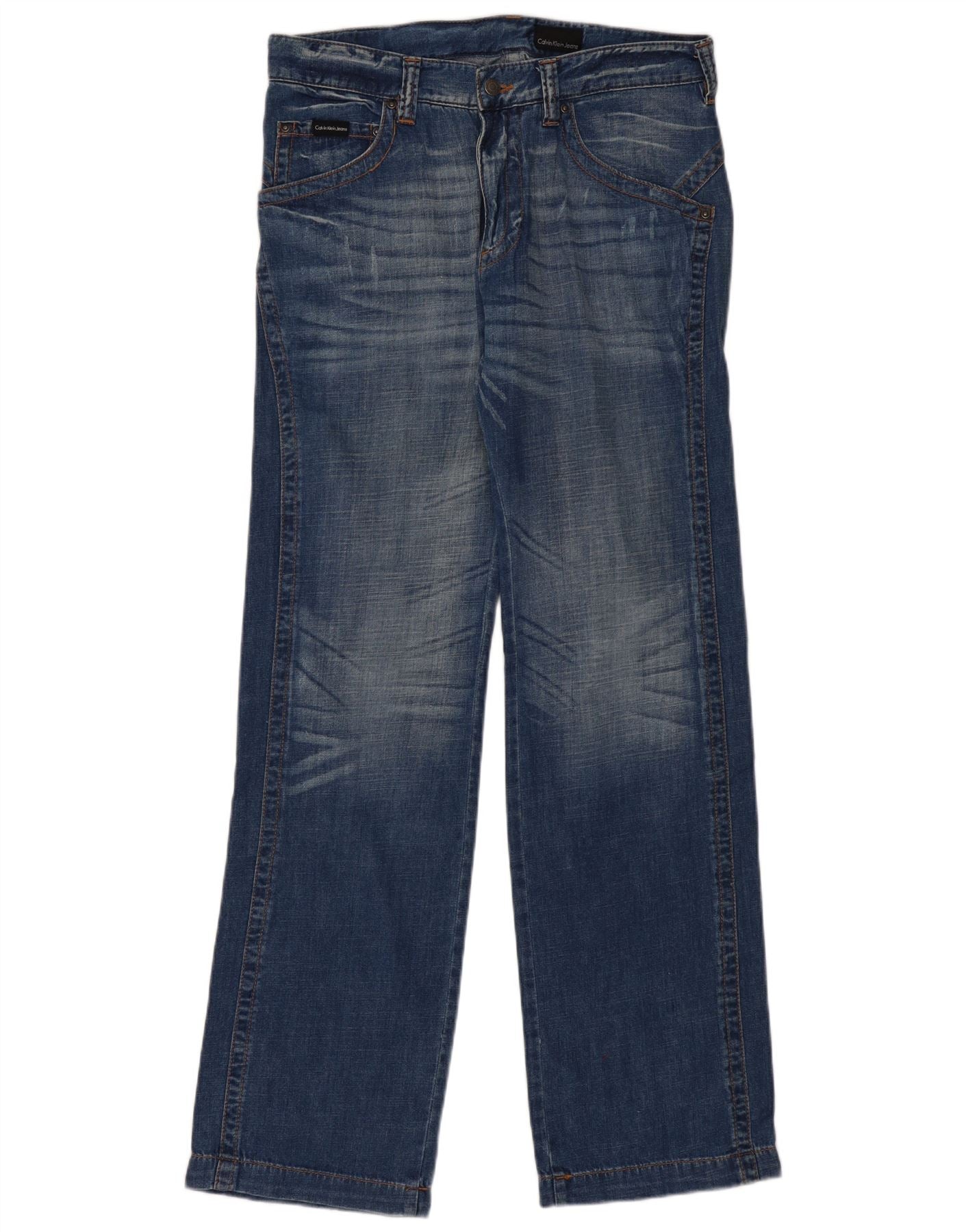 CALVIN KLEIN Herren Straight Jeans W34 L34 Blaue Baumwolle