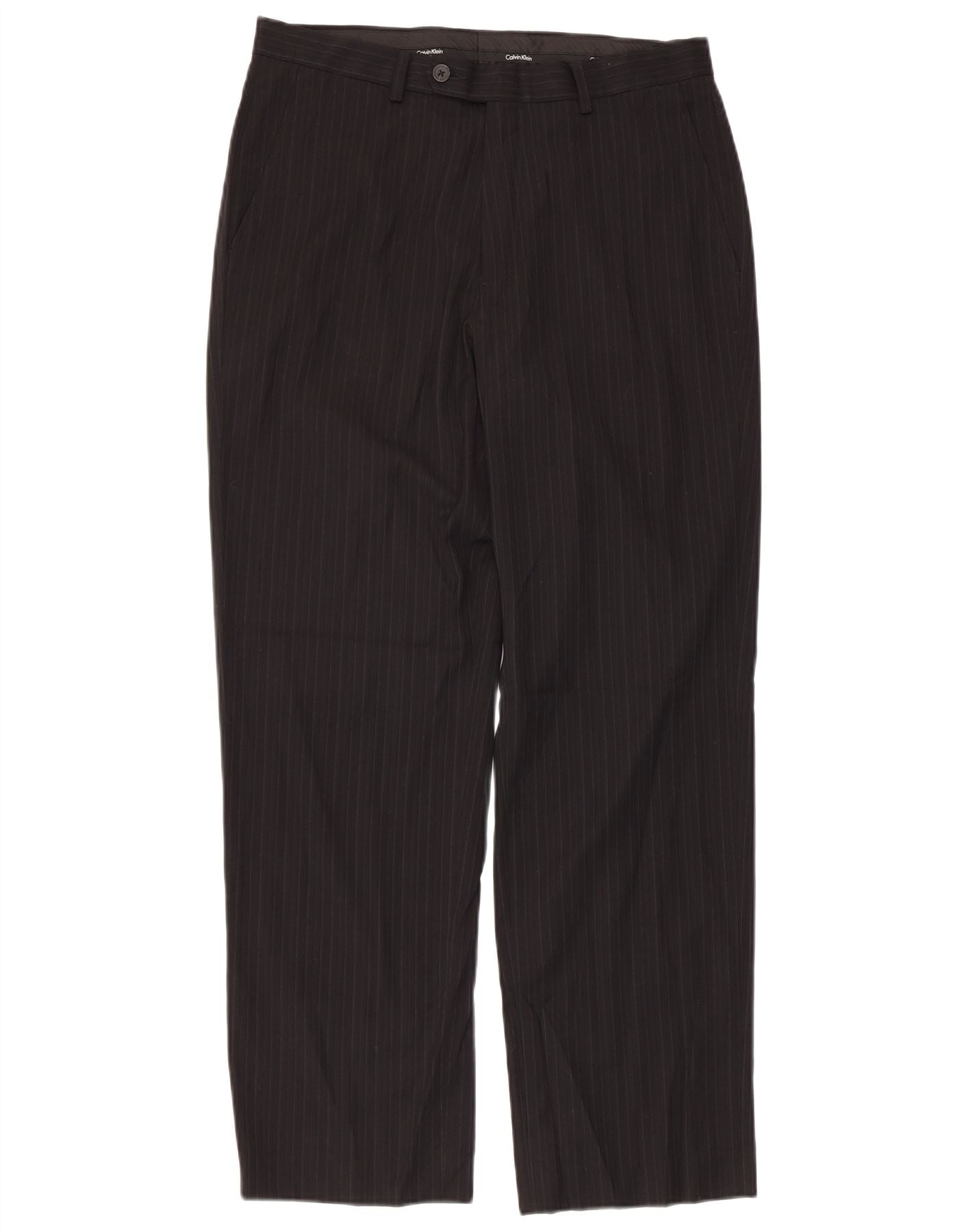 CALVIN KLEIN Gerade Herren-Anzughose W31 L30 Schwarzes Nadelstreifen-Polyester