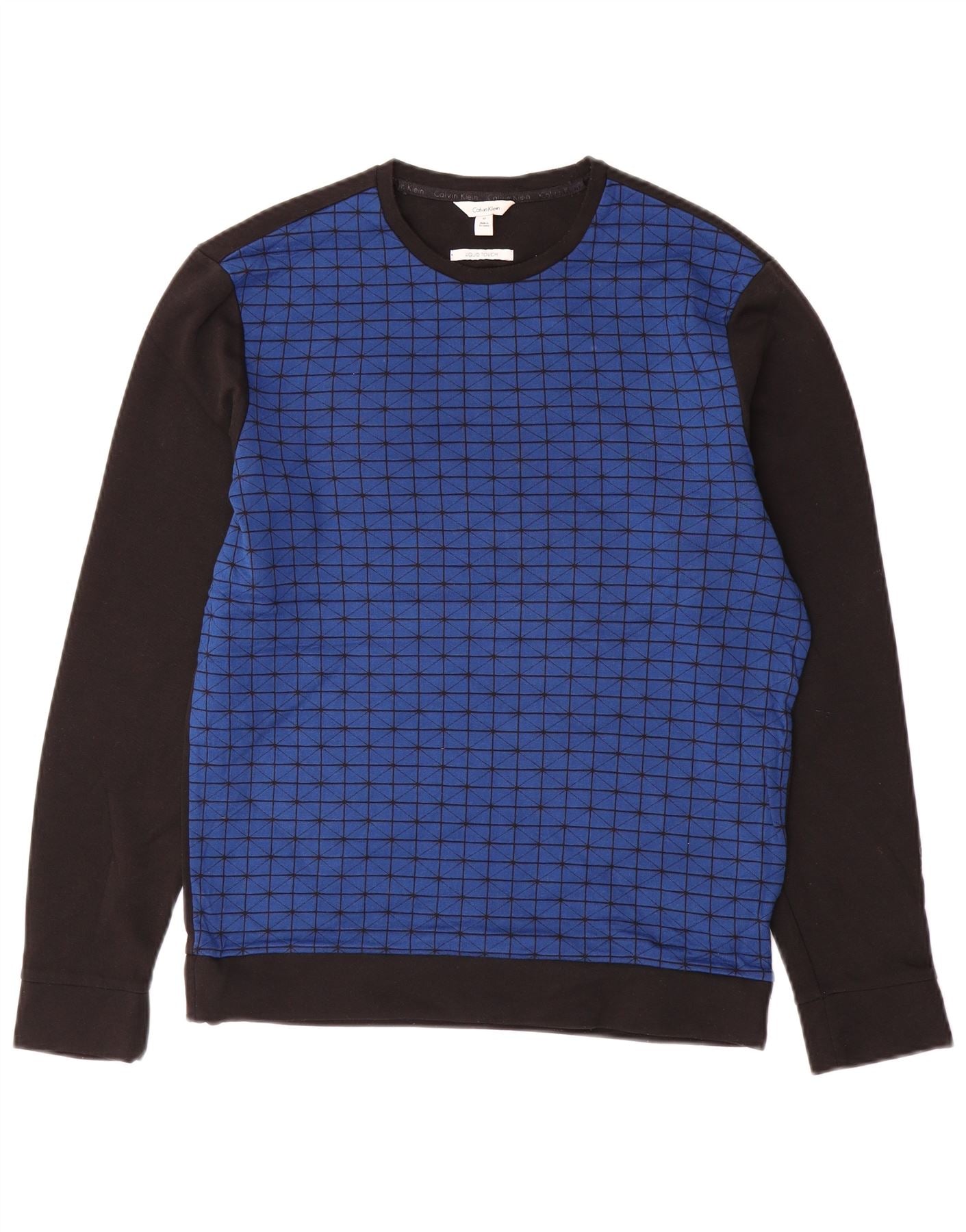 CALVIN KLEIN Herren Sweatshirt Pullover XS Blaue geometrische Baumwolle