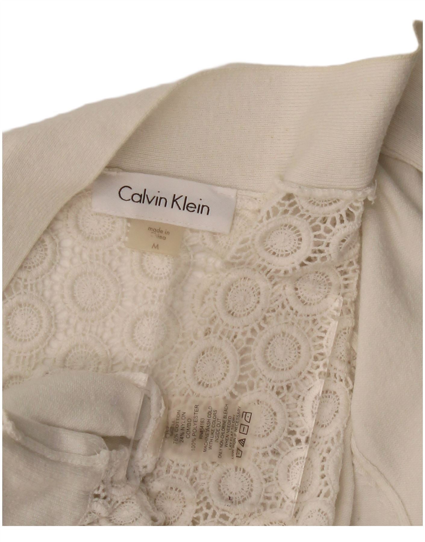 CALVIN KLEIN Damen-Strickjacke mit 3/4-Ärmeln, Gr. 12, mittelgrau, gebrochenes Weiß