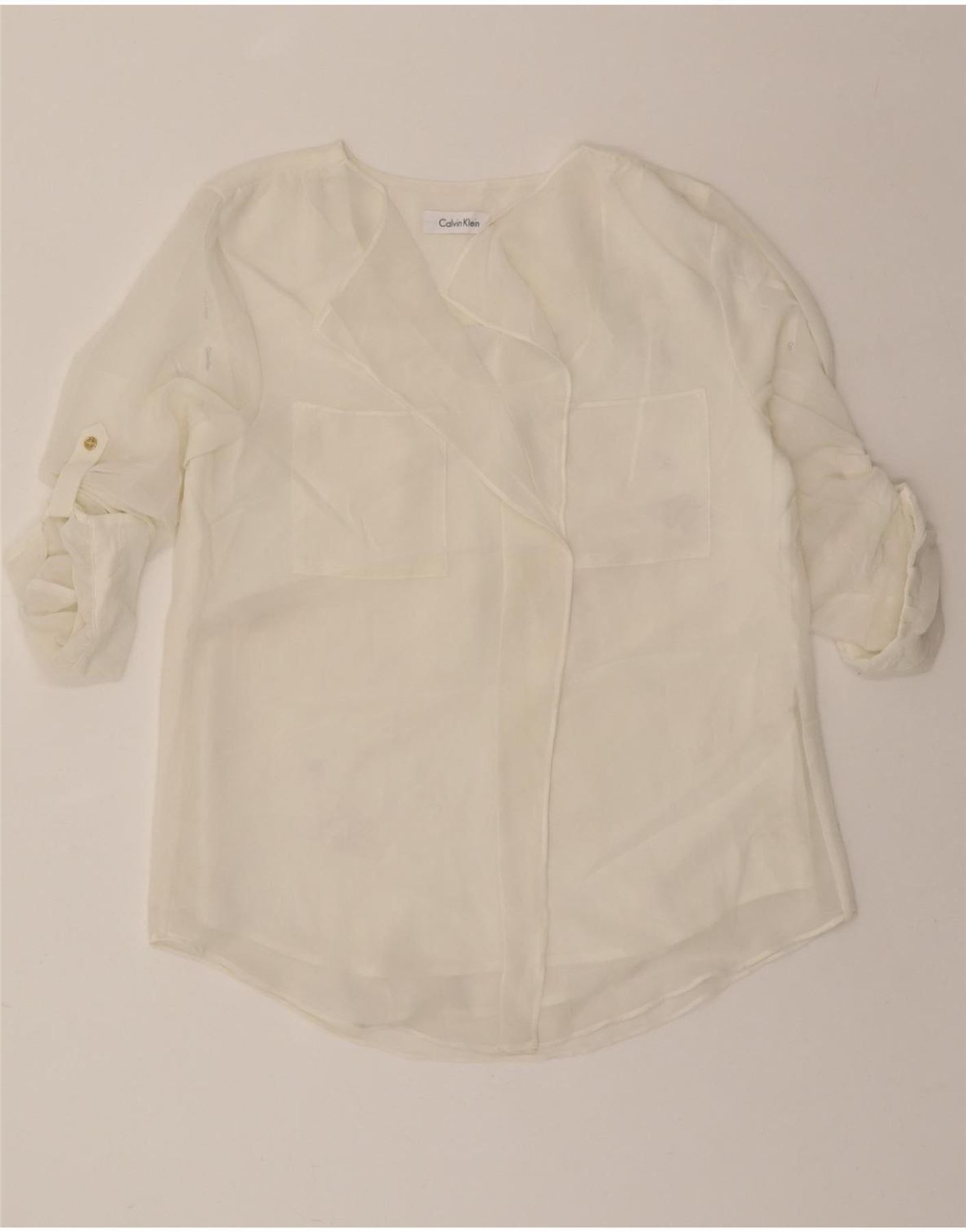 CALVIN KLEIN Womens 3/4 Sleeve Cardigan Top UK 14 Medium White